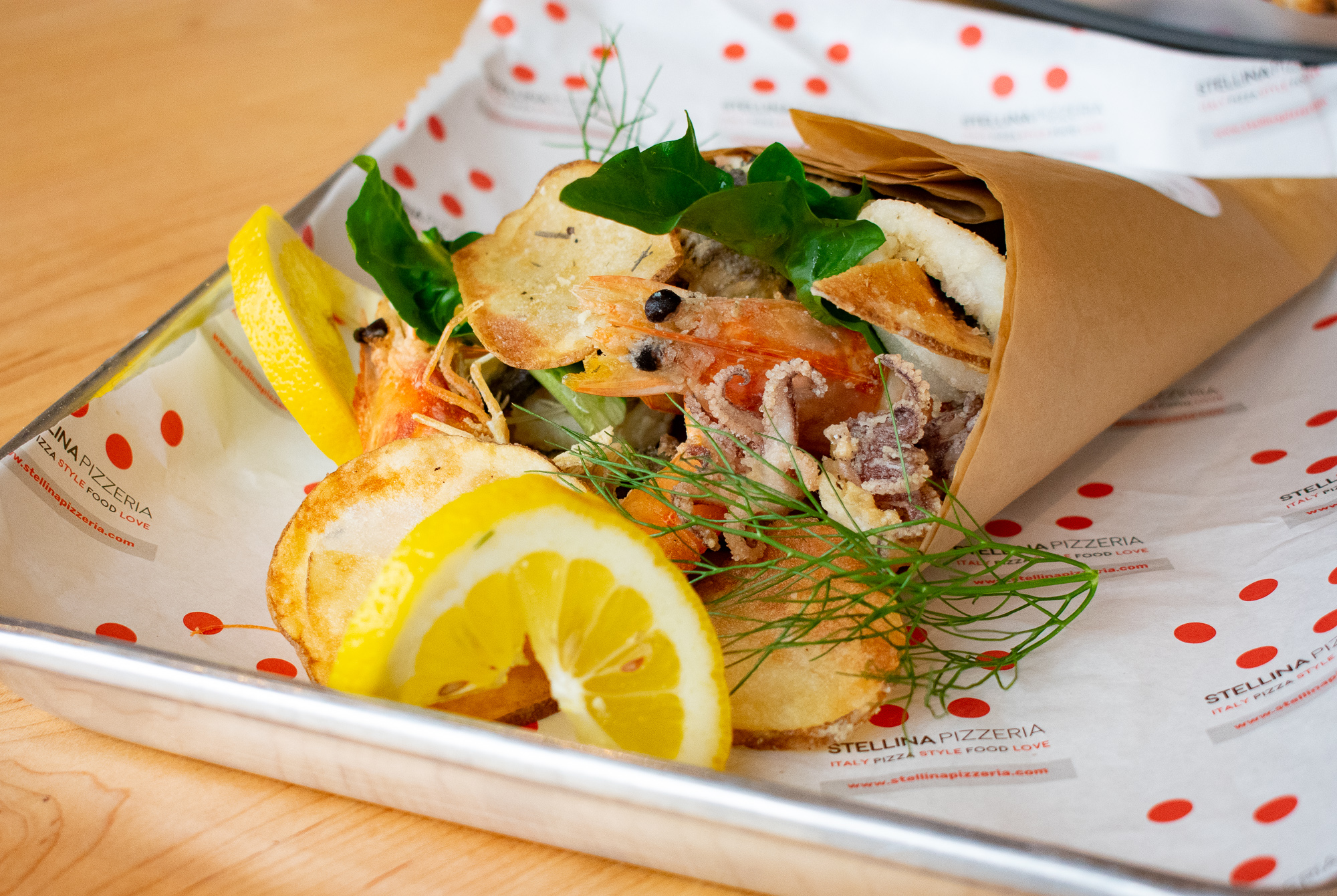 Stellina highlights street food from Italy’s southern coast, with a roster of neo-Neapolitan pizzas, paper cones (“cuoppos”) stuffed with fried seafood and veggies, and panini sandwiches on pizza dough.