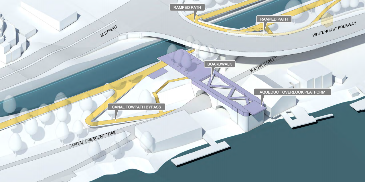 The Park Service hopes to finalize a preferred design for the Georgetown section this spring (they are taking comments on the proposed elements through May 11) and complete the needed environmental assessment by fall. At that point, however, funding must be secured before they are willing to commit to a construction timeline.