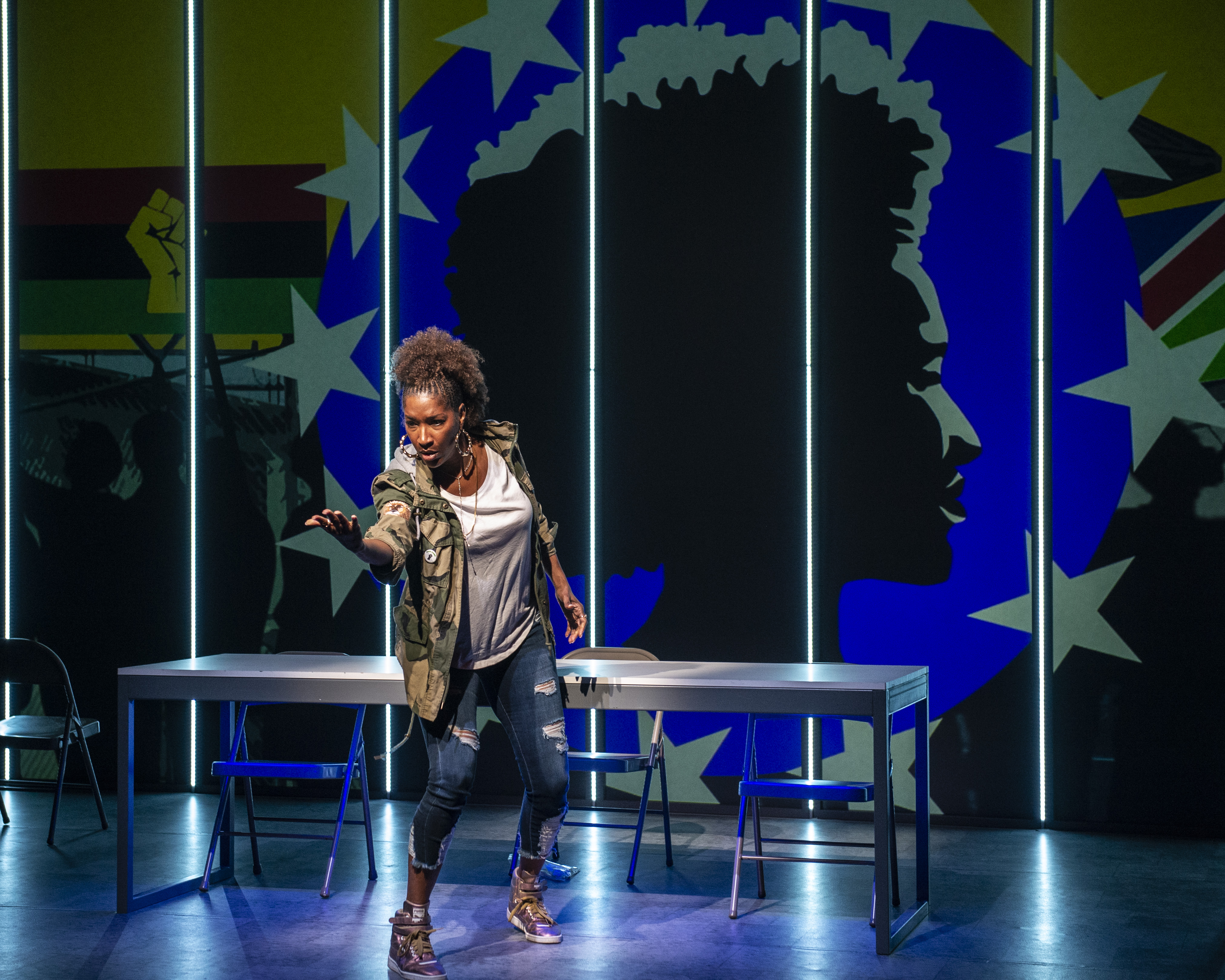 This is not necessarily the fault of Liza Jessie Peterson, who wrote and stars in this whirlwind one-woman show. In Patriot, she plays Betsy LaQuanda Ross, a woman who devotes a great deal of her time to visiting loved ones behind bars. The thrust of the show is a compendium of her visits with a childhood friend, JoJo, who has three years left on her sentence. Betsy helps keep JoJo’s spirits up, lets her know what’s going on with her family on the outside, and—most importantly—informs her of juicy gossip she’s missing out on.