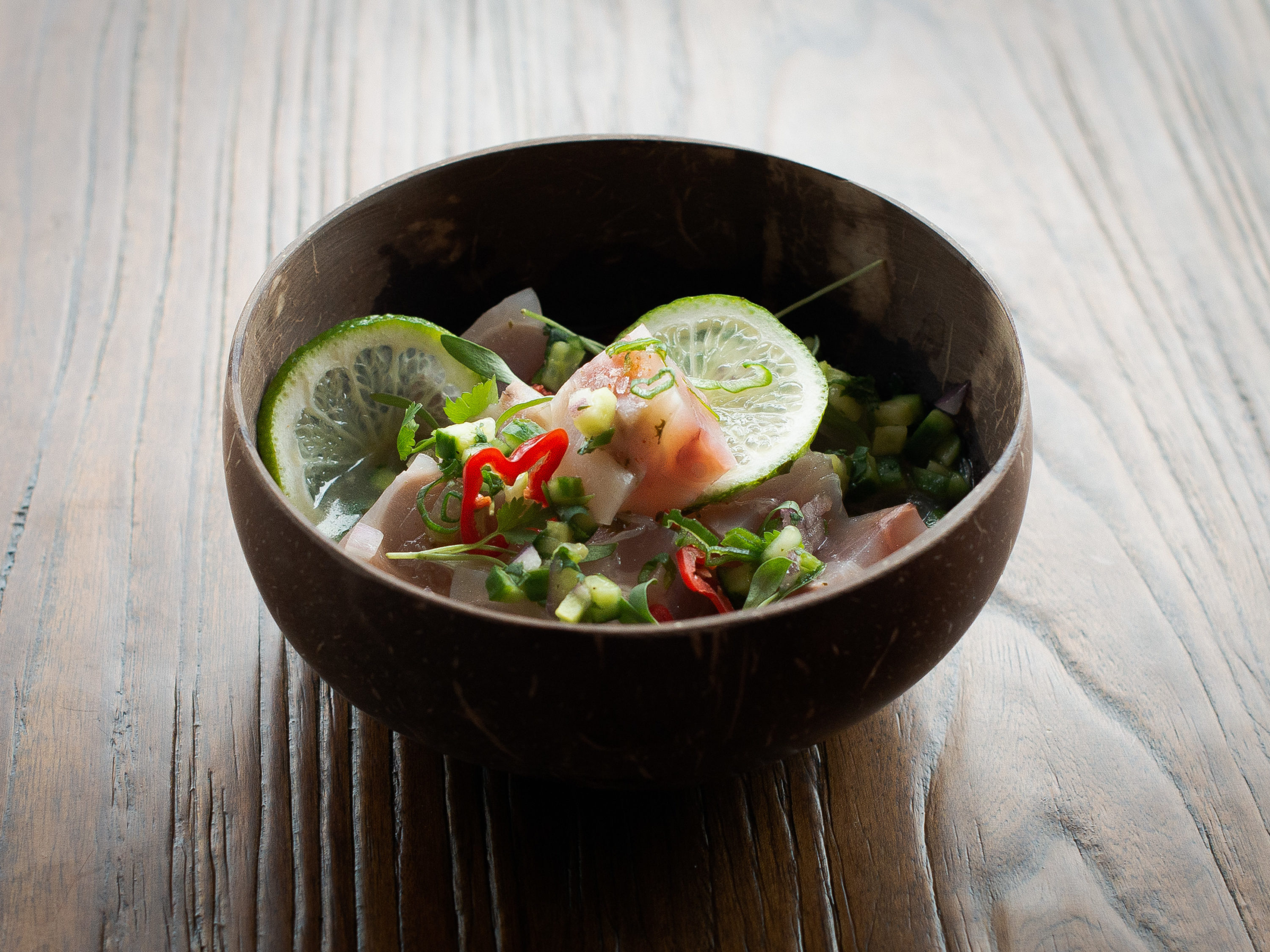 In addition to using exotic spices and recipes, Cane also hopes to introduce diners to a few less common cuts of meat. Cow heel, for example, is slow cooked for many hours, breaking down its collagen until it’s a tender bite that’s layered into a soup with chili, lime, cucumber, and cilantro.