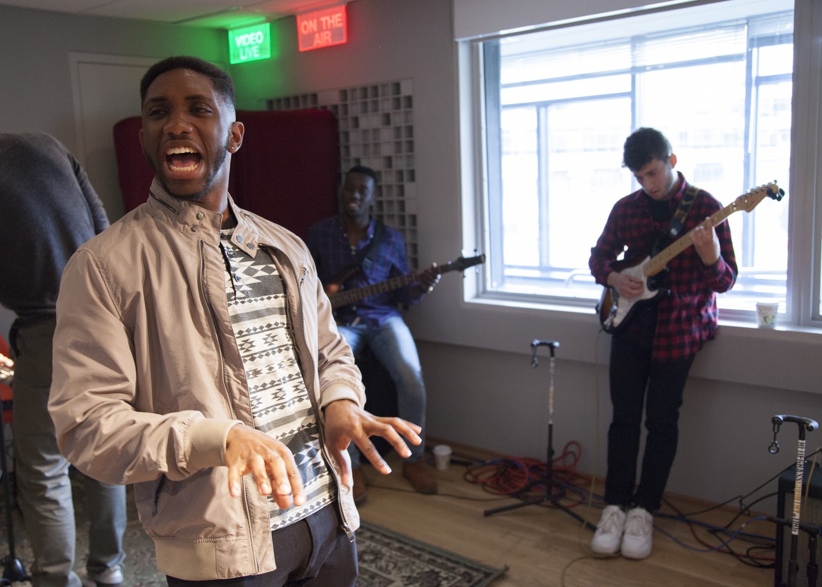 Don’t call 10issues a band: They’re a collective. Drummer and vocalist Joshua Smalley told Kojo that this means that the hip-hop-meets-jazz group can be less structured than a traditional band, and create a space “where we all bounce ideas off one another, play music, and vibe.” Being a collective also means that the large ensemble can play in different combinations or have individual members go out for paying gigs playing jazz standards. But being a group of 10 has one drawback: finding space to practice. After getting kicked out of one rehearsal space on campus for not being music majors, they now play in a tiny recording studio at WMUC, University of Maryland’s radio station.