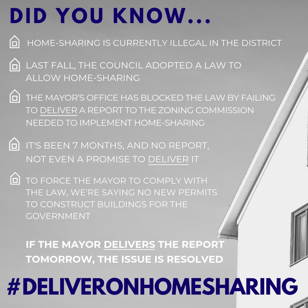 As part of the Council’s passage of the bill, it asked the Zoning Commission to amend the zoning code to allow short-term rentals. The Zoning Commission agreed to do so, but asked that the Office of Planning first submit a report providing details on the current extent of home-sharing and guidance on how to best address it.