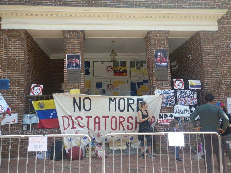“This organization has been appropriating the situation, the suffering of many Venezuelans, to push their own agenda here in the U.S.,” a Venezuelan protester named Daniella said earlier this month outside the embassy. “And what people have to know is that this is not a right or left movement. This is about suffering, visible Venezuelans right now.”