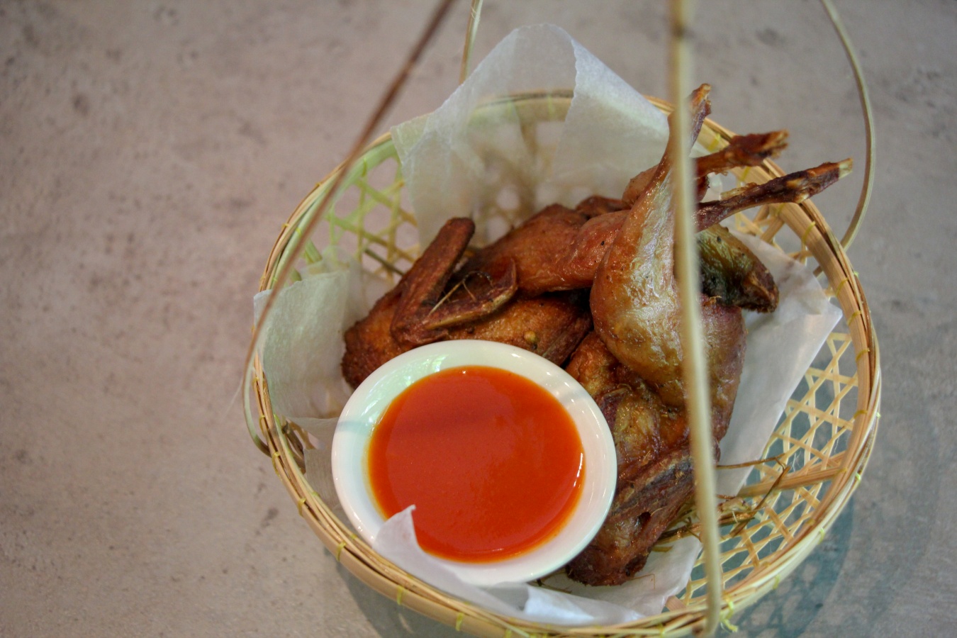 Ongsangkoon is especially fond of the Nam Khao, a lettuce wrap of chicken and crispy rice, and the deep-fried quail, which—apart from its popular eggs—is a rare find in Thailand and Laos. The chef’s favorite is the LIT Signature Salad, her take on a more traditional papaya salad for “a new generation.” She adds bean sprouts, green beans, pork loaf, and crispy rinds to the fermented fruit base for bold taste.