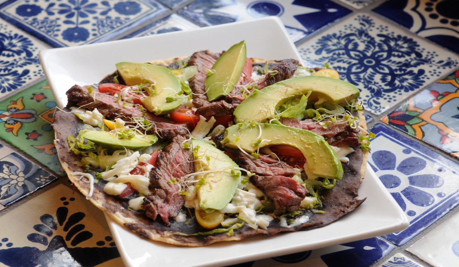 Also from Oaxaca is the tlayuda, best described as “like a Mexican pizza,” says Martinez. Montero takes a house made, platter-sized tortilla and tosses it on a griddle to give it the heft it needs to support a bounty of toppings: black beans, queso fresco from Chihuahua, chicken or steak, avocado, lettuce, and tomato.