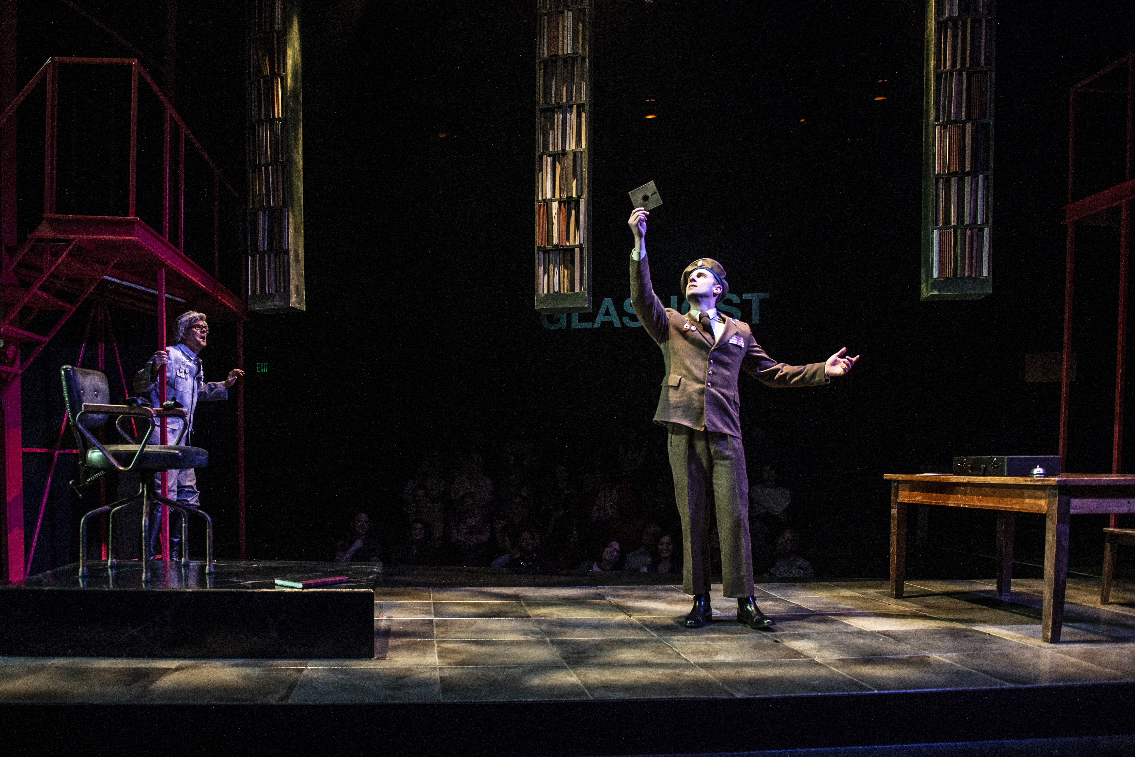 The playwright’s non-linear, and predominantly ahistorical, approach is engineered to be spoiler-heavy and, consequently, impossible to dig into with specificity. But I can say this: Joseph imagines a deep friendship between real-life figures Isaac Babel (a celebrated journalist and the author of Red Cavalry) and Nikolai Yezhov (a key villain in Joseph Stalin’s murderous “Great Purge”) that spans decades, a connection that’s crucial to Describe the Night’s melodramatic and made-up twists and turns. Director John Vreeke and scenic designer Misha Kachman (Woolly veterans, both) are working on an alley staging (with the audience flanking a catwalk-like stage) that feels inherently menacing.