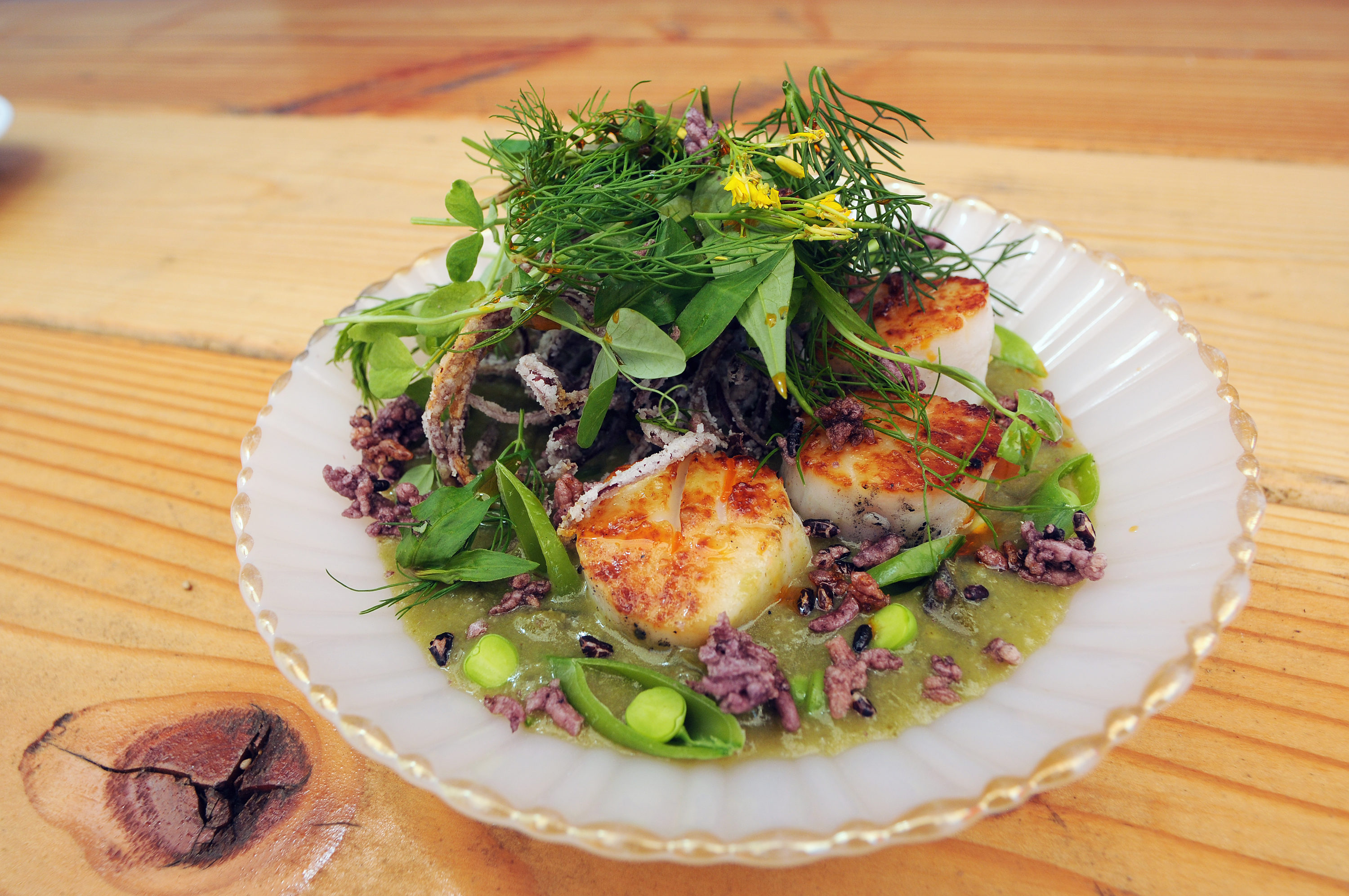 Pradachith, in his effort to assemble a social space, assembles a menu of shareable favorites. The menu of 12-odd dishes rotates so often that it won’t appear online; Pradachith wanted “an opportunity to change the dishes around and play with seasonality and test-kitchen ideas—so we in the kitchen and the guests don’t get bored.”