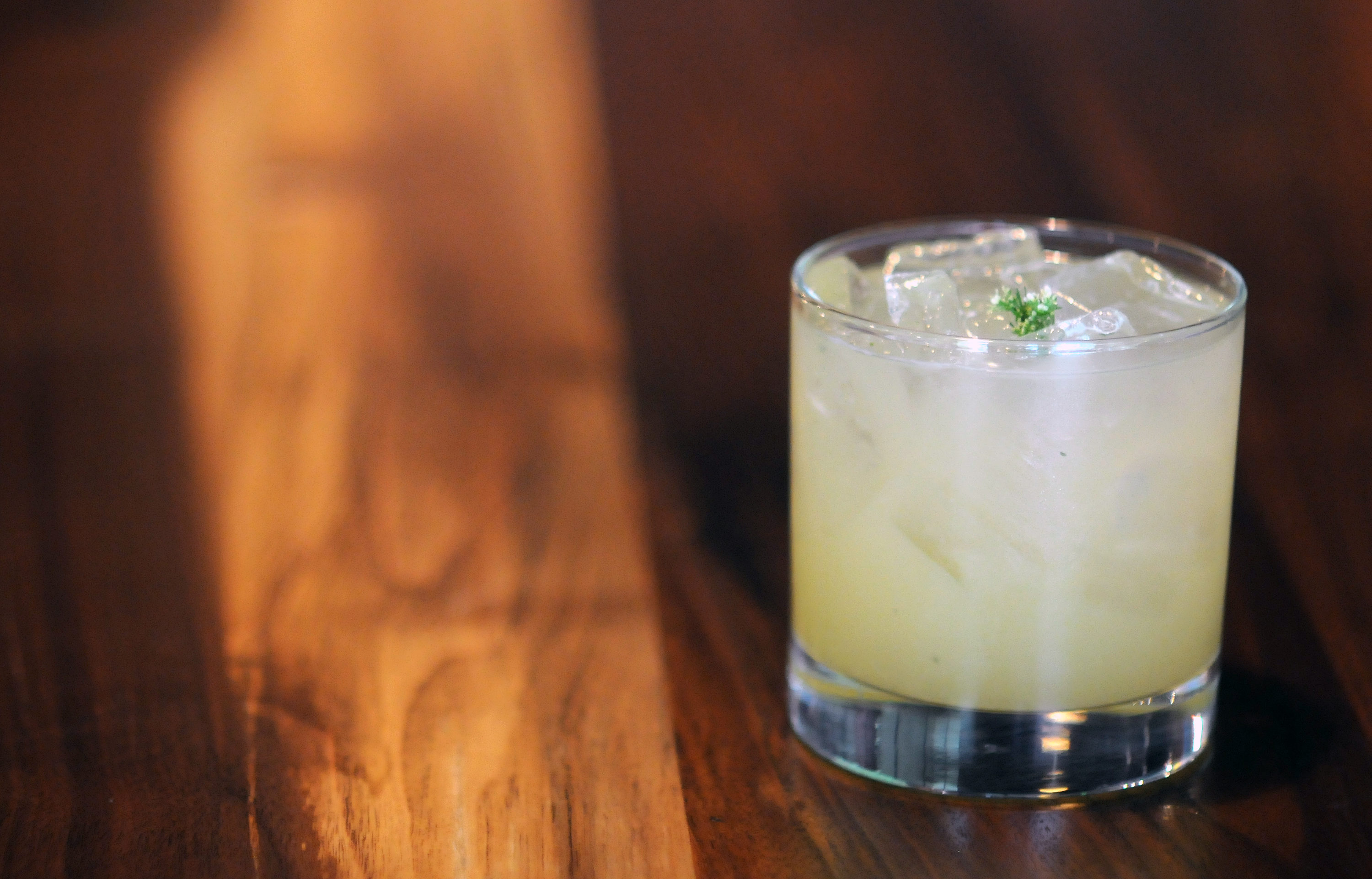 Another favorite of Pradachith’s is the Som Nahm Nah, roughly translating as “you get what you ask for/what’s coming to you,” which is what his parents would say to him as a child. The drink, refreshing at the start, builds on gin and aquavit with lime, cilantro, and lemongrass—but ends with a strong kick from chilies and ginger.