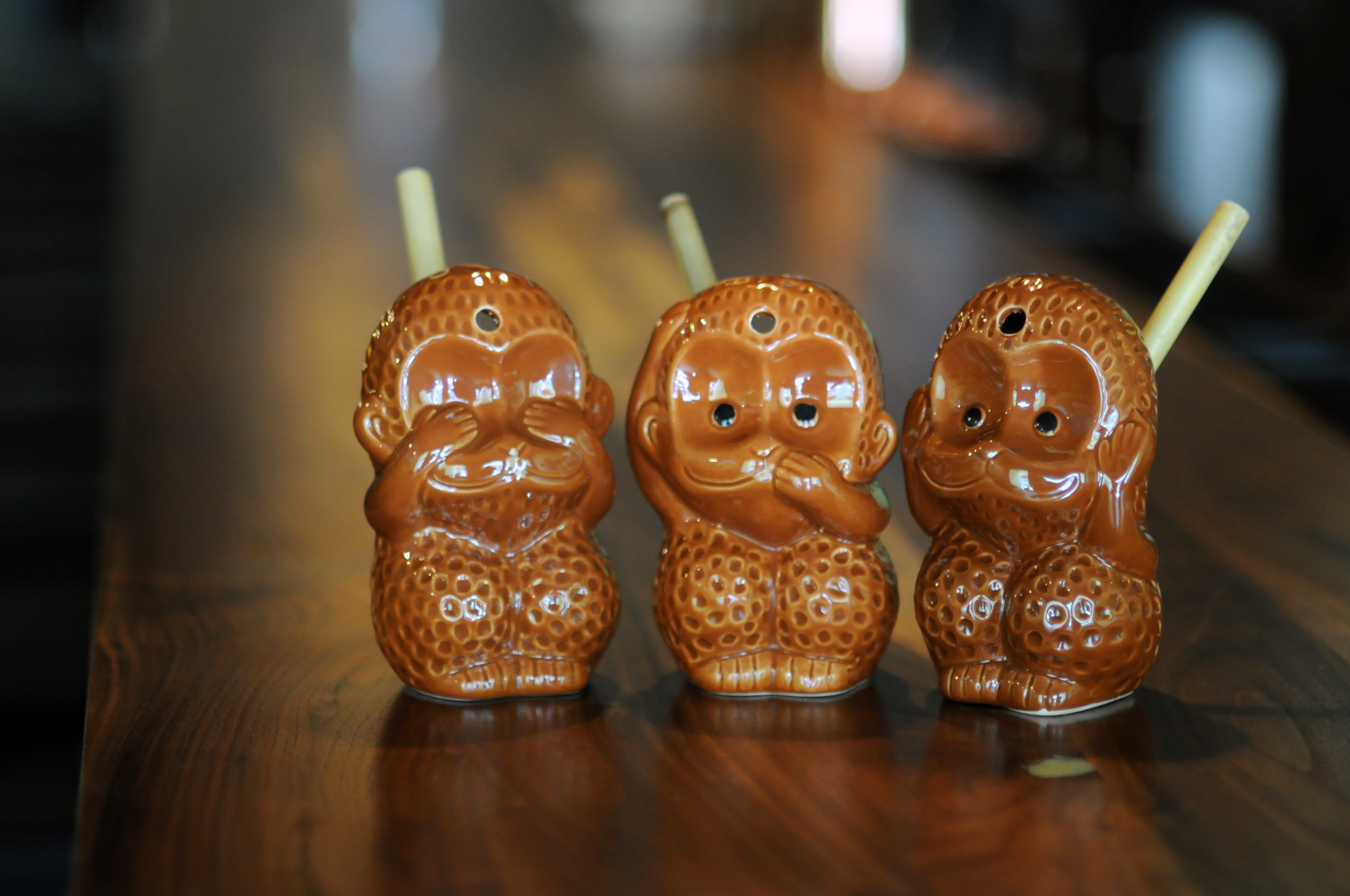 Foremost at the bar is the namesake Hanumanh cocktail, arriving in a ceramic monkey. Its base is Lao-style White Tiger whiskey, created locally but distilled from traditional sticky rice. Thompson infuses the whiskey with bananas, nutmeg, and cinnamon, adds brown-butter fat-washed condensed milk, and mixes in passionfruit and papaya puree: fruits that Hanumanh worshippers use as offerings to the monkey god.