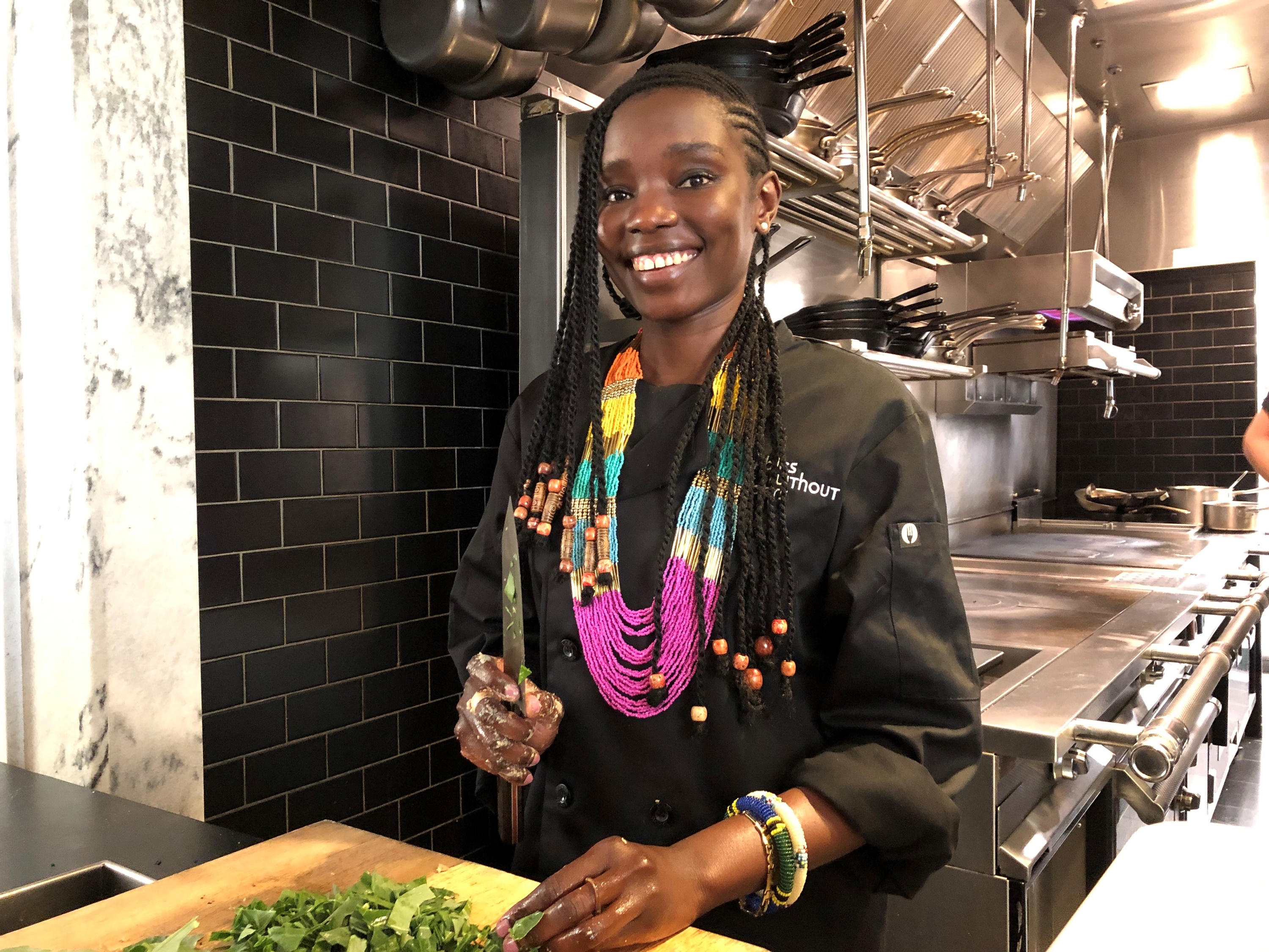 The effort has paid off. As part of a new program called Tables Without Borders, Apollo is cooking alongside chef Patrick Crooks, known affectionately as Chef Opie, at A Rake’s Progress inside the Line Hotel in D.C. The program is in honor of World Refugee Week. Ahead of the event, Chef Opie prepared his interpretation of a traditional South Sudanese dish called bamia for Apollo to taste and critique.
