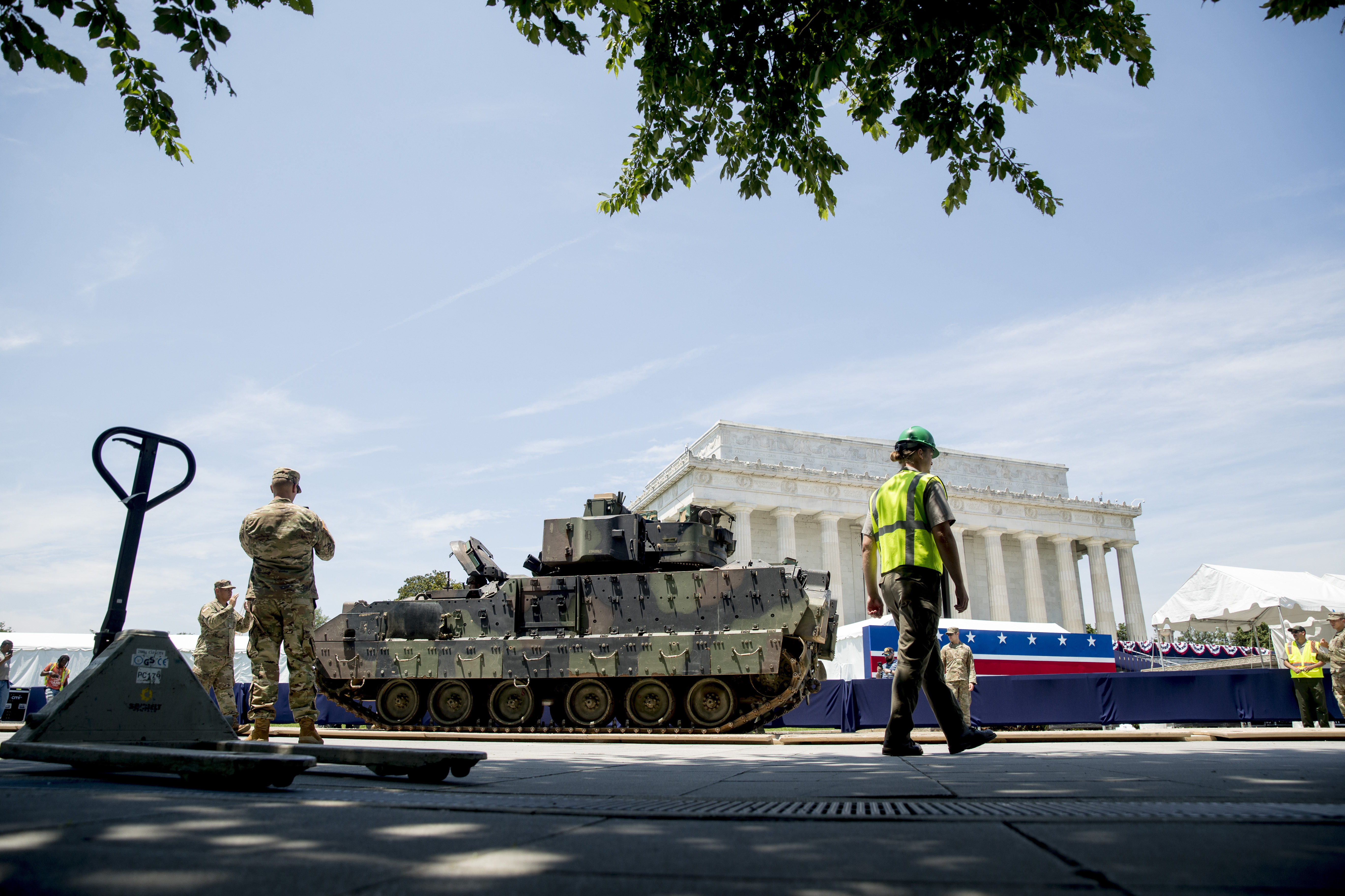 - WILL IT RAIN?: Will rain dampen the parade (literally and figuratively)? In a maybe inadvertent metaphor, the forecasters at the National Weather Service say “things [are] definitely looking more active on Thursday.” They’re talking about a high pressure system that’s been hovering around for a few days and could bring showers—including potentially severe thunderstorms throughout the afternoon and evening. In addition to the possibility of impacting Trump’s festivities, rain could impact the fireworks display. Remember the great PBS scandal of 2016? The skies were so gloomy that the broadcaster had to use stock footage from previous years in the national broadcast. Meanwhile, temperatures will be in the low 90s, with the heat index making it feel more like 100 degrees, potentially leaving protesters and supporters wilting on the National Mall alike.