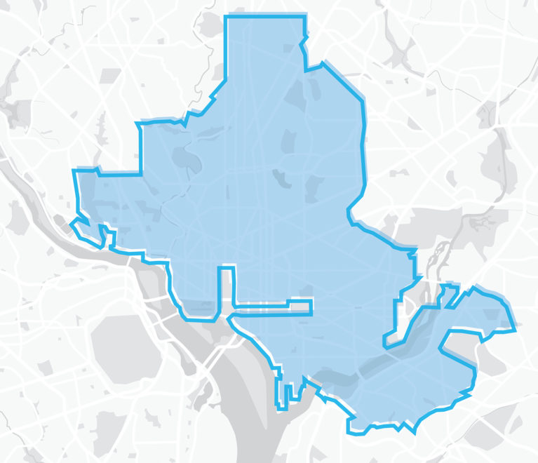 Revel’s D.C. service area map focuses on the Downtown Business District and nearby areas.