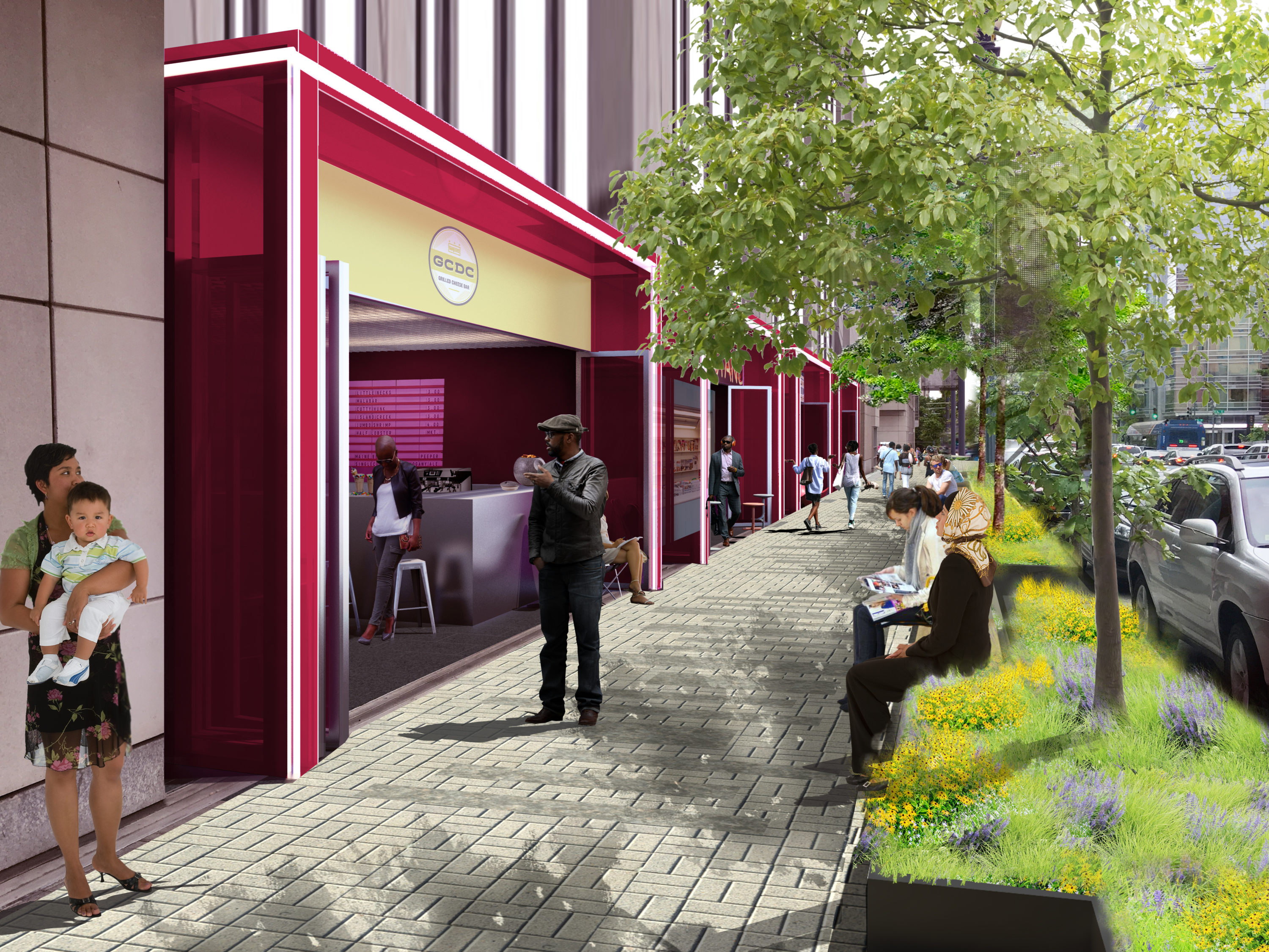 Events DC hopes that this updating of the convention center’s exterior will better match the neighborhood today. On the 9th Street side of the building, the plan is to add seven small retail “kiosks” that will, according to Events DC, provide opportunities for local businesses. There will be increased landscaping, including plantings of D.C. native plants black-eyed susans and coneflowers, and better bench seating.