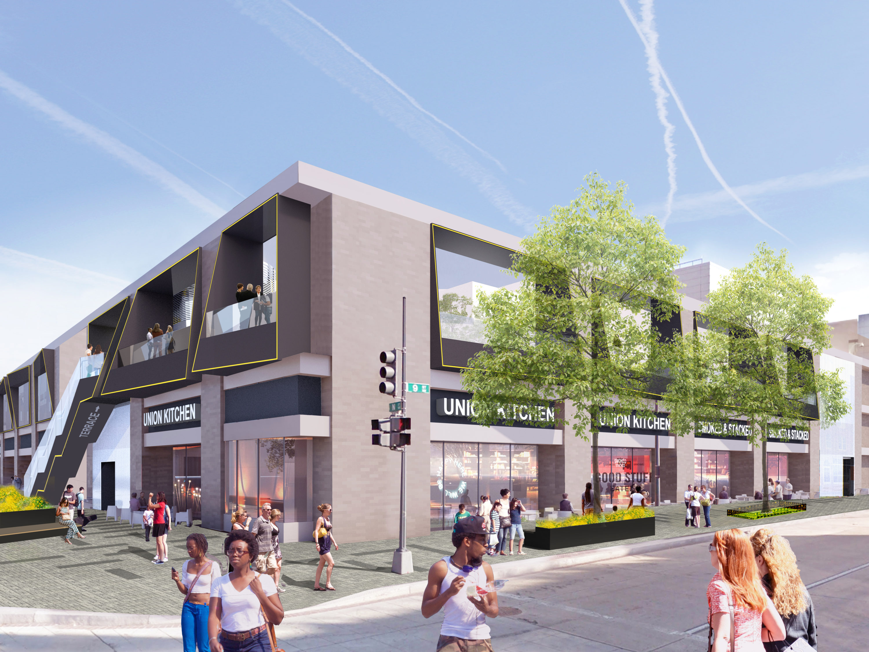 A rooftop terrace will be added, with an entrance on 9th Street “Anybody [will] be able to take their lunch up there to the rooftop terrace and enjoy it,” says O’Dell. “It will be for residents just as much as visitors.” The terrace will have permanent public restrooms.