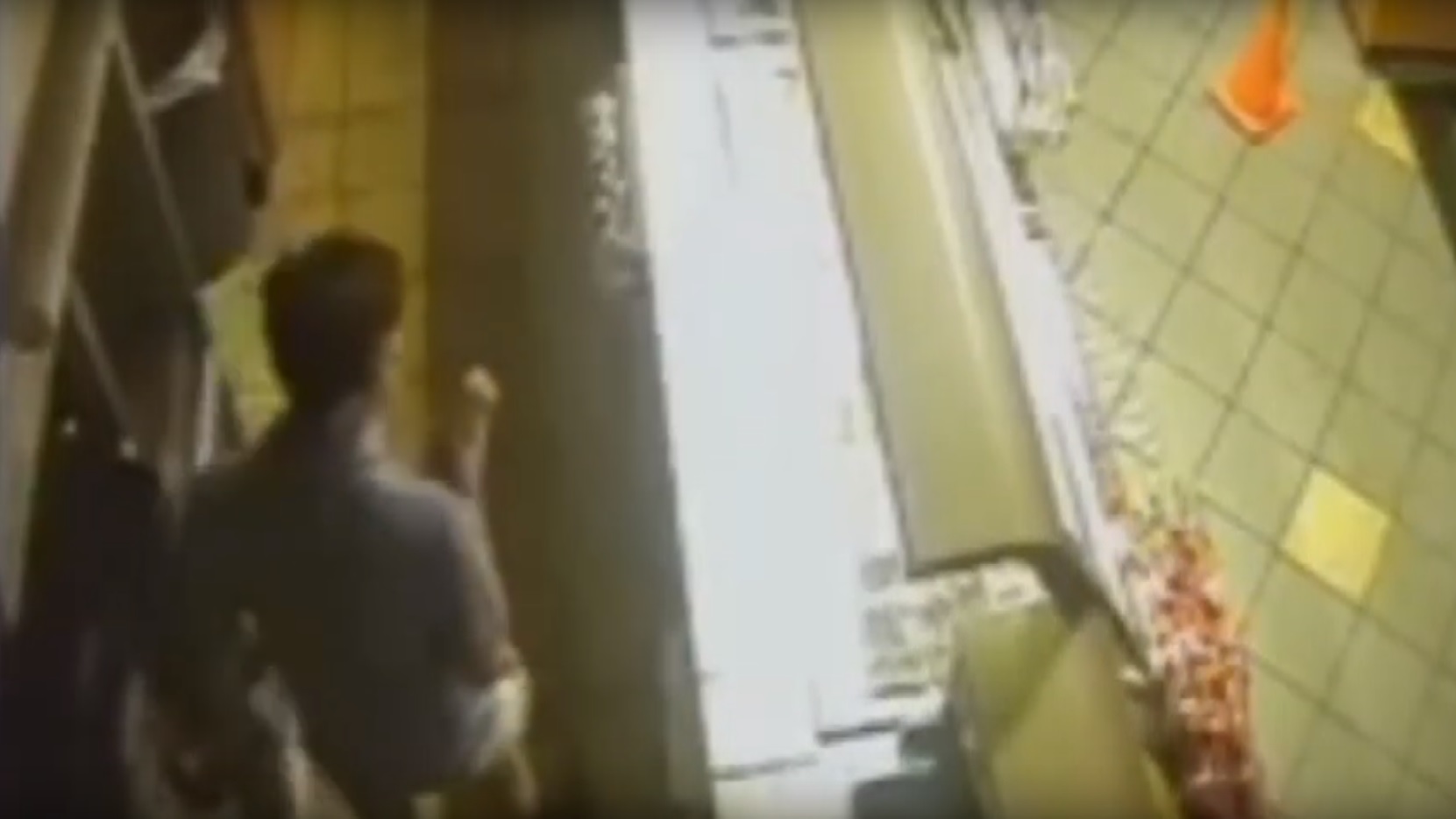 Surveillance video shows the man casually walking past the counter and picking up a bag of chips. Deciding he needed more than a mere late-night snack, he leaped over the counter and fell to the floor before dusting himself off and grabbing a loaf of bread.