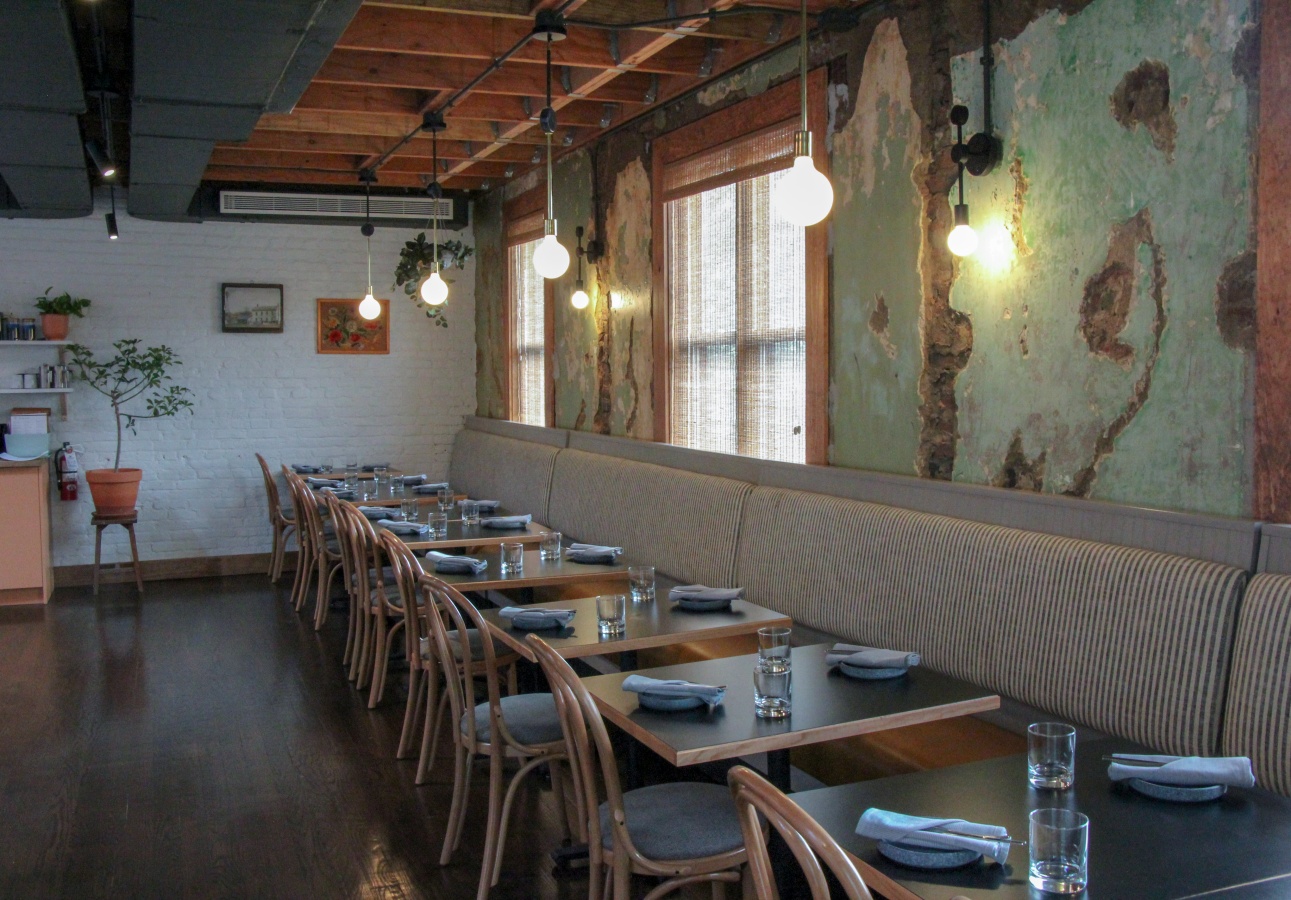 Anju is multiple experiences rolled into one—part late-night bar with happy hour prices, part fine-dining—in a two-floor setting populated by plants, patterned wallpaper, airy ceilings, and family artwork. Designer Natalie Park, who is also Lee’s wife, created the space to showcase remnants of the original walls. The Fried Rice Collective’s dogs have a prime spot at the bar in framed portraits. (Their names are Boo Radley, Agnes Ice Princess Von Fultz, and Stella June Kim, for the record.) The private dining room and the downstairs space are available to rent for parties.