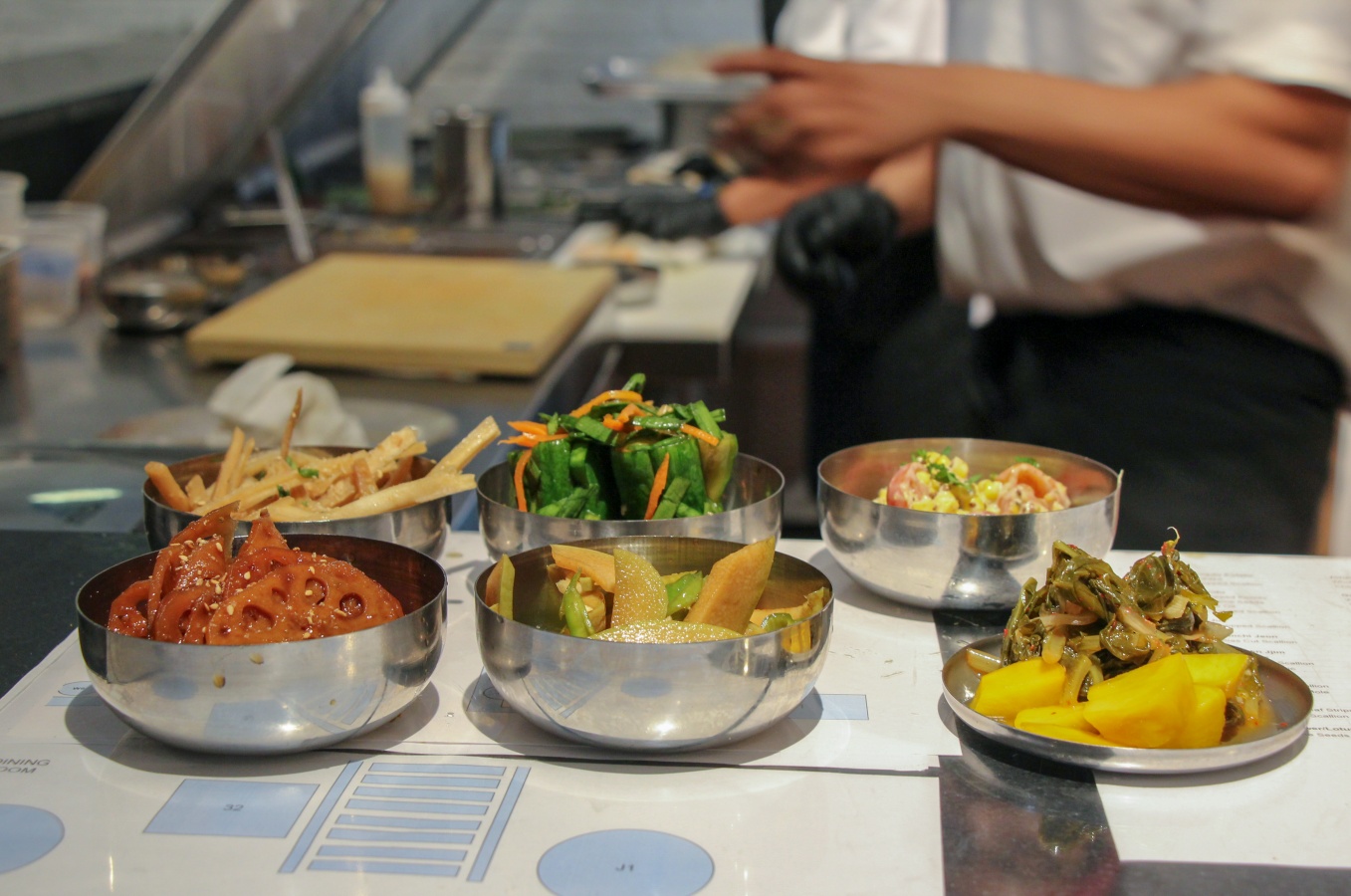 Mama Lee’s classics carry over her beloved recipes from Mandu, including bibim bap cooked in hot stone and Korean chili-braised chicken thighs. The panchan section of sides, which are usually free at KBBQ restaurants, will be $3-$5 per dish, in part because of the time and ingredients that go into them, says Barreto. One kimchi dish has been pickled for 100 days, while a bellflower root comes all the way from the Korean oceanside.