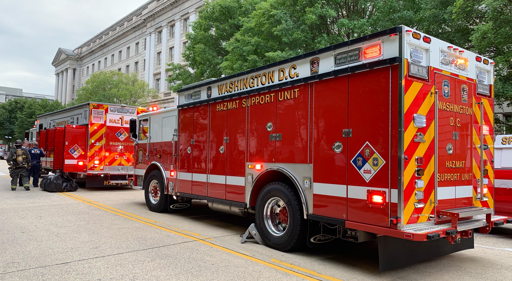No one was injured in the incident, which resulted in an evacuation of the building and the closure of Constitution Avenue NW between 10th and 12th streets. The hazmat team concluded their work as of 11:45 a.m.