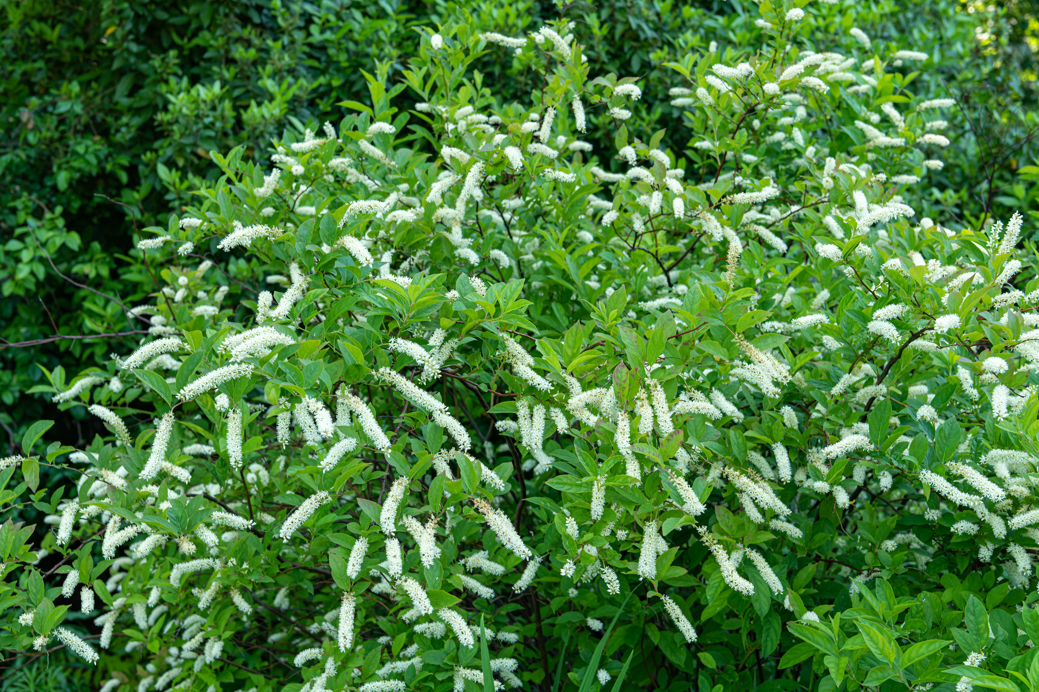Also known as the Virginia sweetspire, this deciduous shrub produces white drooping flowers. The leaves turn red in the fall which adds a seasonal touch to your garden. It prefers moist, acidic soils, but can also survive in areas with poor drainage.