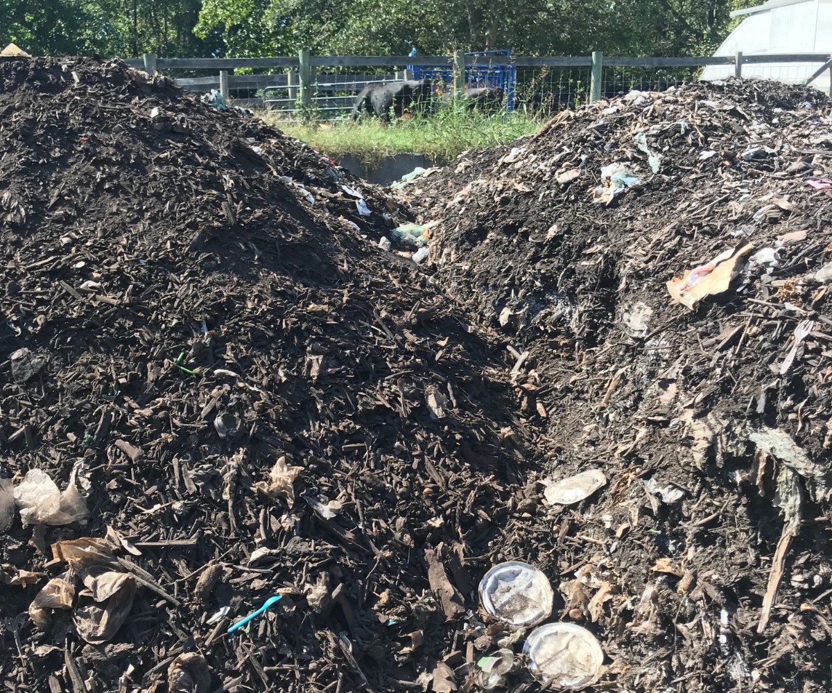 Just yards away sit several conical piles of dark brown mulch-like material, the kind of thing that might get bagged up and shipped off to Home Depot for home gardening projects or office-park landscaping. Except these aren’t commercially prepared bark nuggets—they’re the leftovers from thousands of D.C.-area meals.