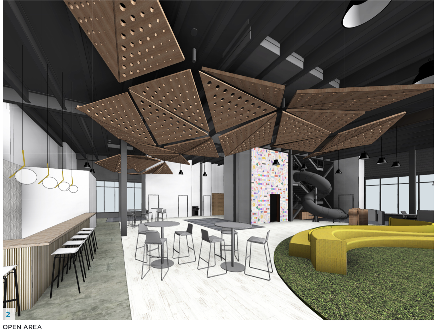 A cafe and bar will serve food and drink from local businesses, allowing parents to enjoy coffee and croissants while their kids sip on apple juice and munch on a grilled cheese.