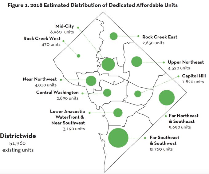According to a report released Tuesday by the Office of Planning, D.C. has a larger goal to make sure at least 15 percent of all housing in each planning area is affordable. Rock Creek West, Rock Creek East, and Capitol Hill have the most catching up to do to reach those goals, the report says.