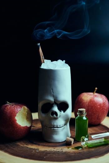 At this rooftop bar, guests are instructed to think of the $12 Halloween Punch as a “Halloween candy bowl but way better, because … cocktails.” Made from Knob Creek Rum, Roku gin, angostura, falernum, and ginger, you’ll have to put on a brave face to get yourself a drink. Hint: it’ll be located on the bar, under dark shadows surrounded by swaths of dry ice. It’s only available on Halloween.
