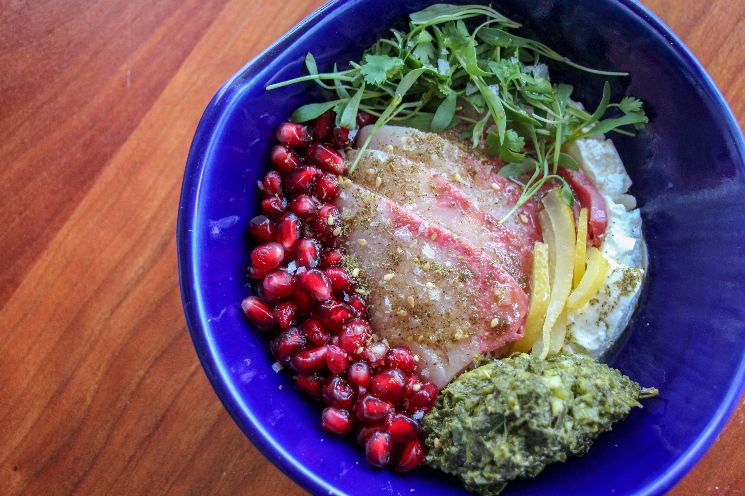 Steiner intentionally tapped a mix of seasoned and aspiring professionals for Pom Pom, including former Doi Moi sous chef Amanda Moll, who has an executive chef role for the first time. The two met through Jo McDaniel, the bar manager at A League of Her Own. Rather than stick to one type of cuisine, Steiner and Moll chose to combine Mediterranean and Middle Eastern flavors, with pops of southeast Asian, Korean, and Japanese influence.