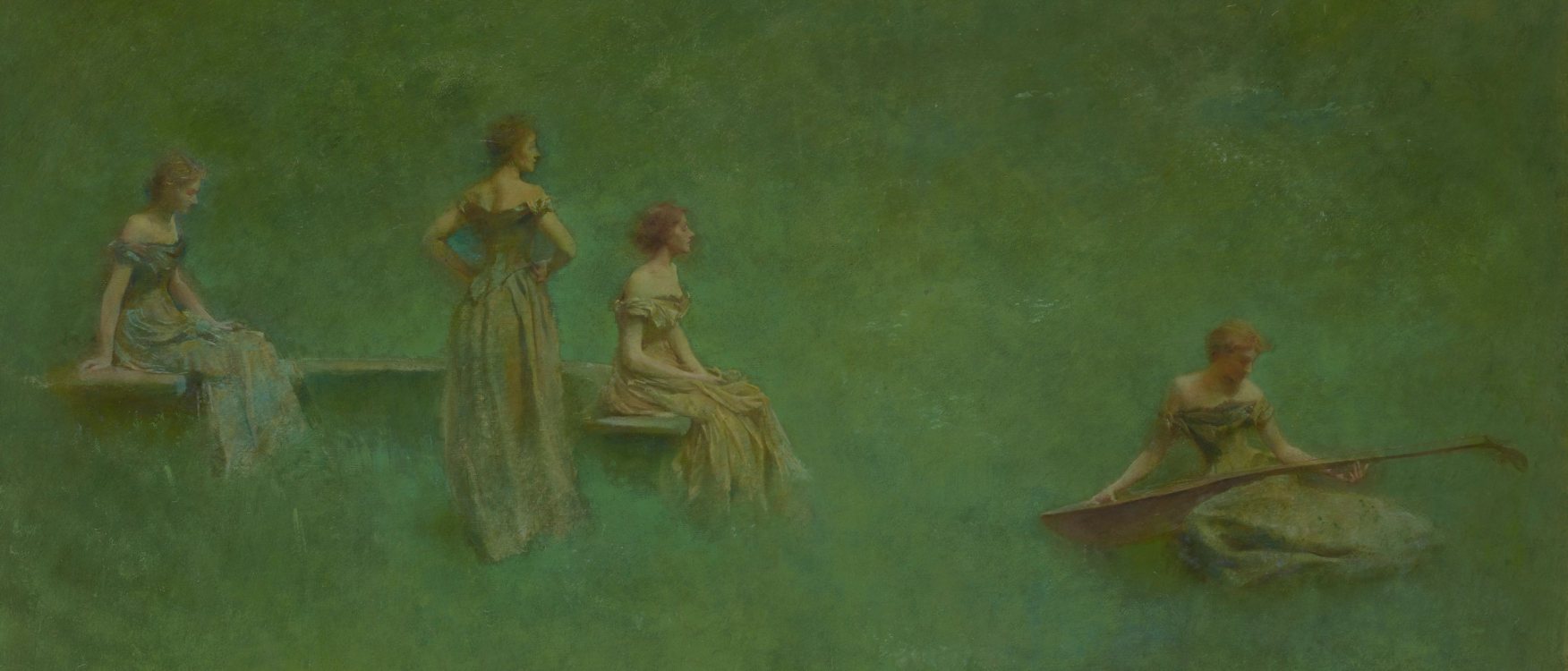 Born in Boston and educated in Paris, Thomas Wilmer Dewing (1851-1938) was best known for moody tonalist paintings that featured women lost in contemplation. Yet despite the solitary nature of his canvases, he was part of a buzzing social network of artists and dealers. This exhibition explores Dewing’s social world, including the New Hampshire artist’s colony he founded with his wife, artist Maria Oakley Dewing, and his friendship with museum founder Charles Lang Freer.