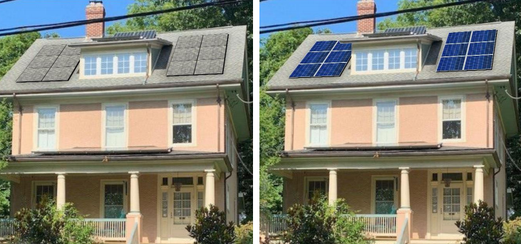 The biggest difference between this version of Preister’s application and previous ones is the addition of what’s often called a solar “sleeve” or “skin”—a product applied on top of the panel that changes its color to help it blend in better on a roof.