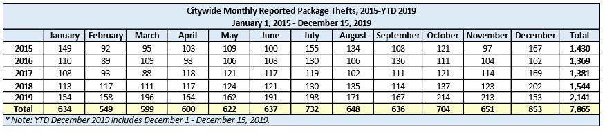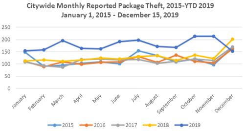If package thefts continue apace through the end of the year, December 2019 will win the dubious honor of Most Package Thefts of any month in the past five years.