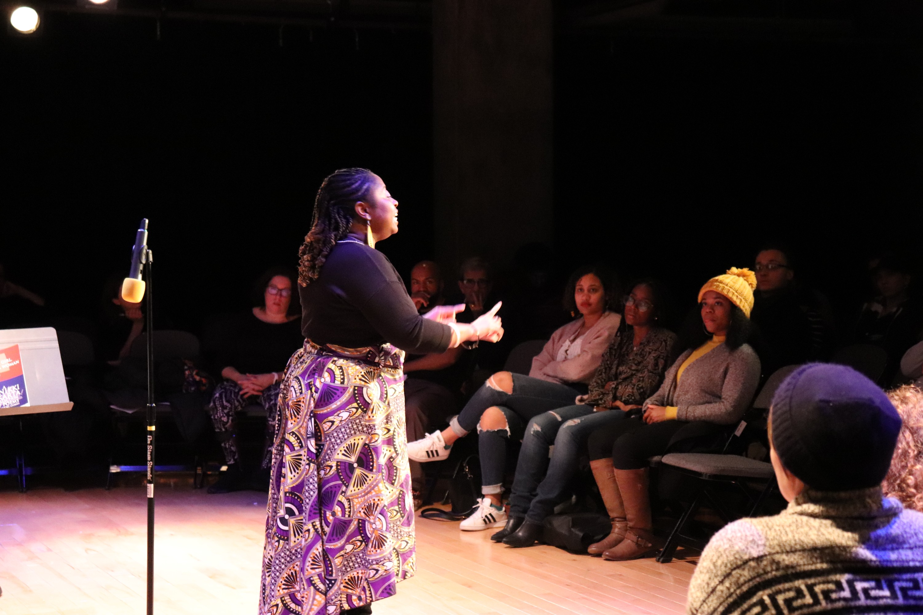Meanwhile, Lawson-Brown was fostering a partnership with Kristen Jackson, connectivity director at Woolly. Jackson first met Lawson-Brown through a poetry event at the theater in 2014 as part of her work producing special events and partnerships with educators, activists, and community leaders. When she learned Spit Dat was looking for a new home in February, she thought it would dovetail well with the theater’s mission.