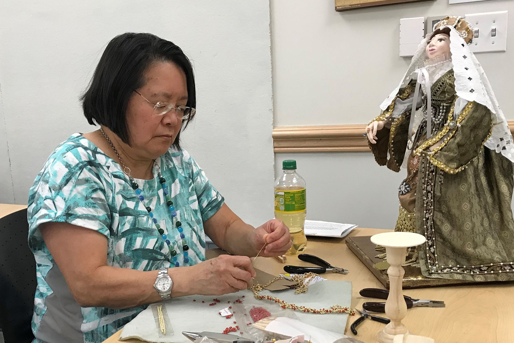 This exhibition features art dolls made by Montgomery College students with the help of teacher Weldelin Daniels. Their sculptures are based on historical figures and fantasy characters, or their own imaginations. Some come with props or accessories, and each tells their own story.