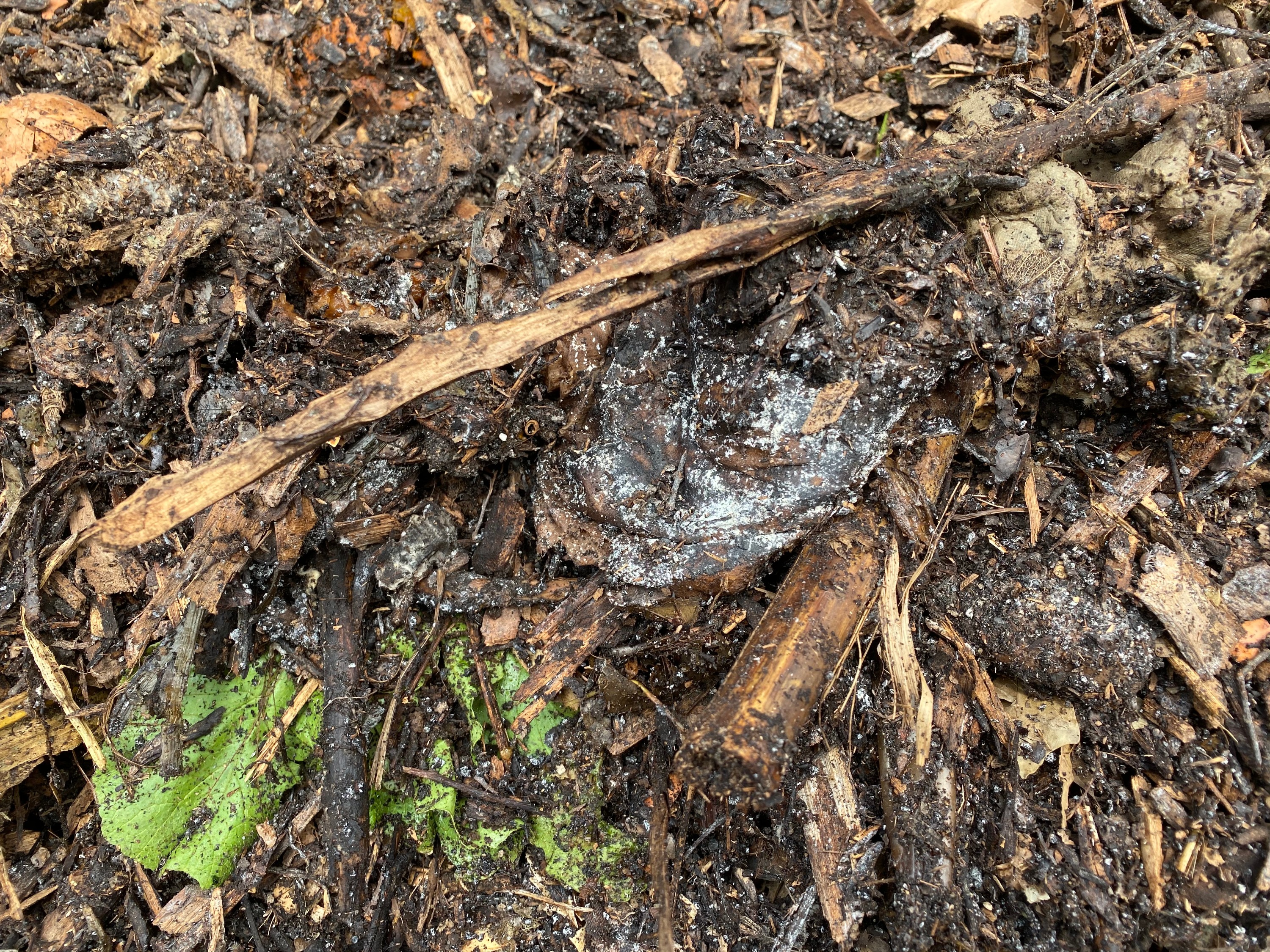11:51 a.m. I stash the pitchfork back in the bin, return the side panels, and lock it up. I walk back with both a sense of accomplishment and also shame, for it was me who added a few unchopped scraps to the pile, but I was too chicken to admit it. Better to ask forgiveness and do it right next time?