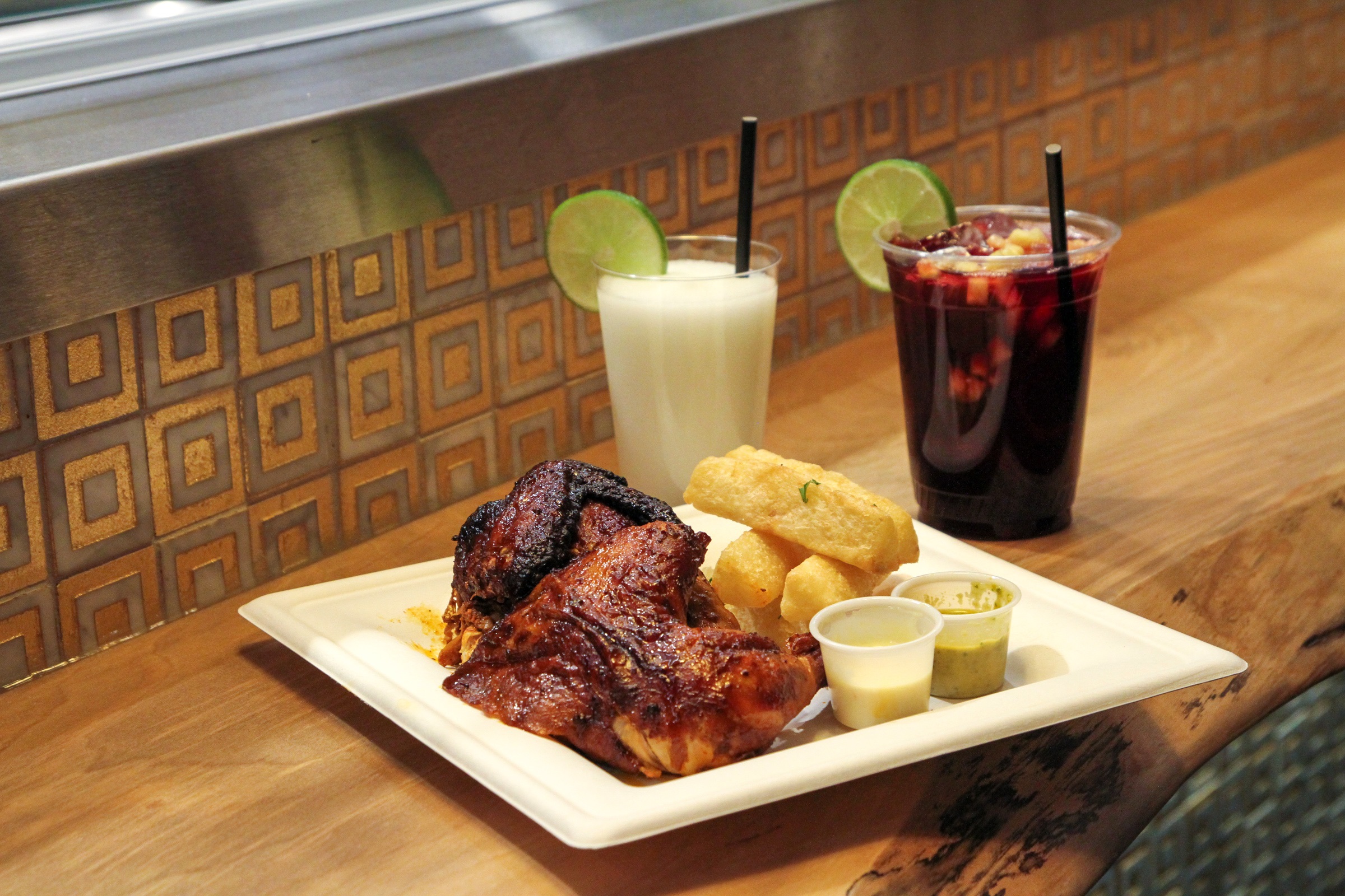 Fans of the food truck will find items they’re familiar with, like empanadas and pan con chicharrón, when the restaurant opens on February 1, along with new dishes. Most notably, they’ve added Peruvian rotisserie chicken, which customers often ask for at the food trucks. “My brother has done a tremendous job mimicking the same flavor that we had in Peru,” Giuseppe Lanzone says. There will also be yucca fries, sauteed veggies, quinoa salad, and—courtesy of their new liquor license—alcoholic beverages, including a slushy pisco sour.