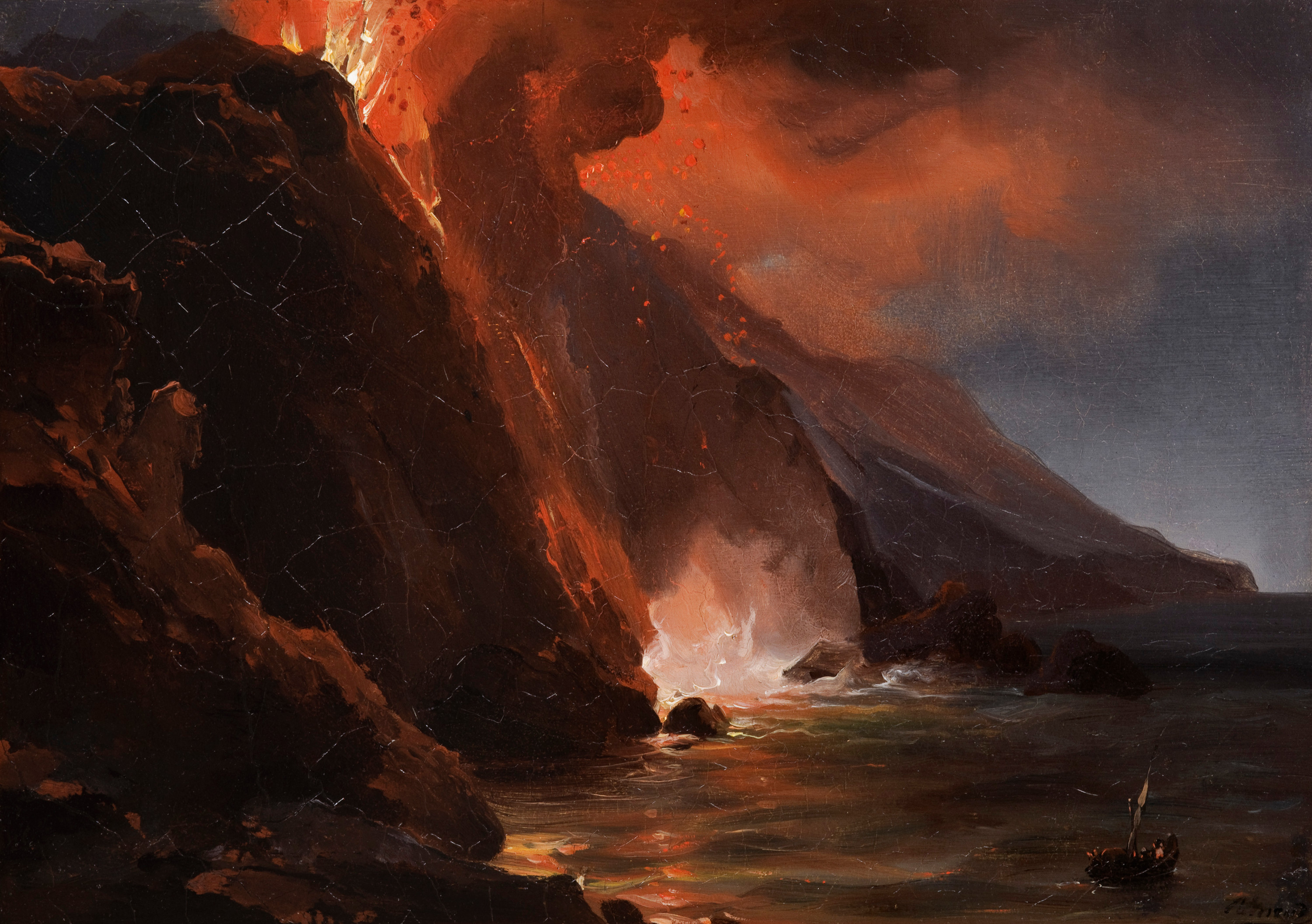 A crucial part of education for art students in 18th or 19th century Europe was training to observe the shifting light and textures of landscapes (even an erupting volcano—see above). Prospective artists would make long journeys all over the world to paint en plein air: in the open air. This exhibition presents 100 such oil sketches made outdoors across Europe by such artists as as Carl Blechen, Jules Coignet, André Giroux, Anton Sminck Pitloo, Carl Frederik Sørensen, and J. M. W. Turner.