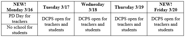 Teachers were scheduled to have a professional development day on March 20, but that was moved up so the school system could plan with teachers earlier, on Monday. That professional development day will now include planning for the possibility of school being closed for an extended period of time, Ferebee said.
