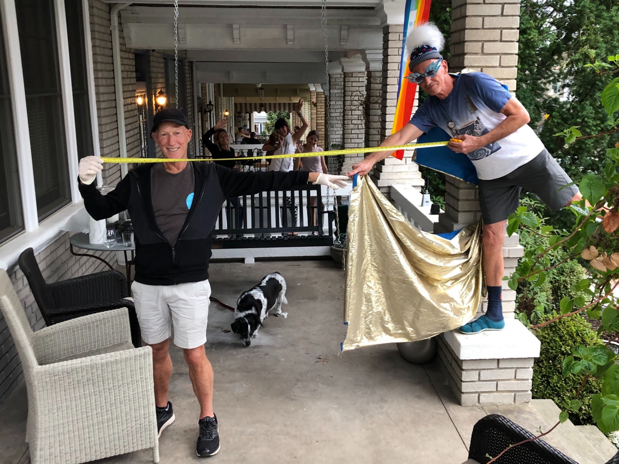 It’s one minute before 6 p.m. on Friday, and Steve Dunn is ringing a cowbell on his street in Mt. Pleasant in Northwest D.C. Neighbors up and down the street gathered on their porches. Dunn’s husband, Tom Burkhardt, donned a sparkly cape, feathered hat and sunglasses to rally the crowd.