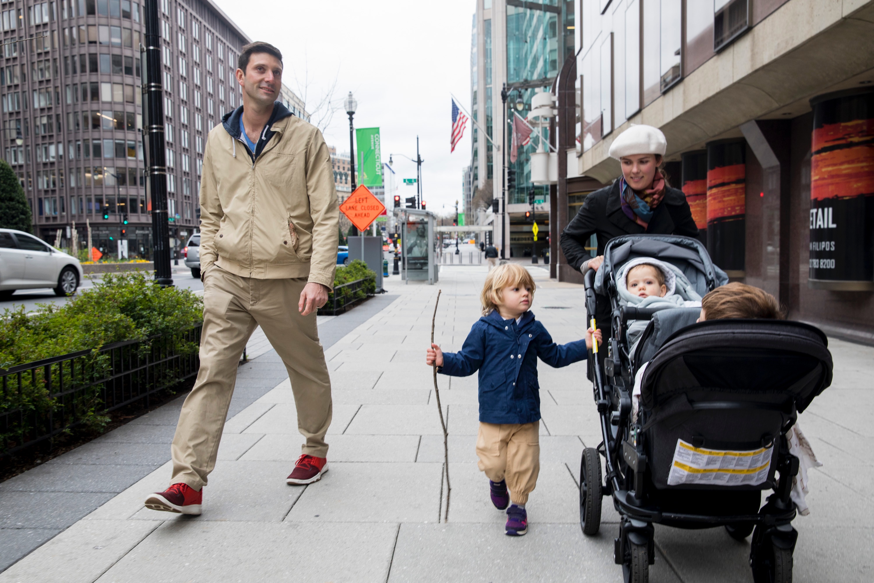 Ted and Christine Janis maneuvered a stroller packed with three kids through the empty sidewalks downtown, looking for a park that’s still open. “Yeah, we just got back,” says Ted Janis. “We’re State Department. We just got evacuated from Indonesia.”