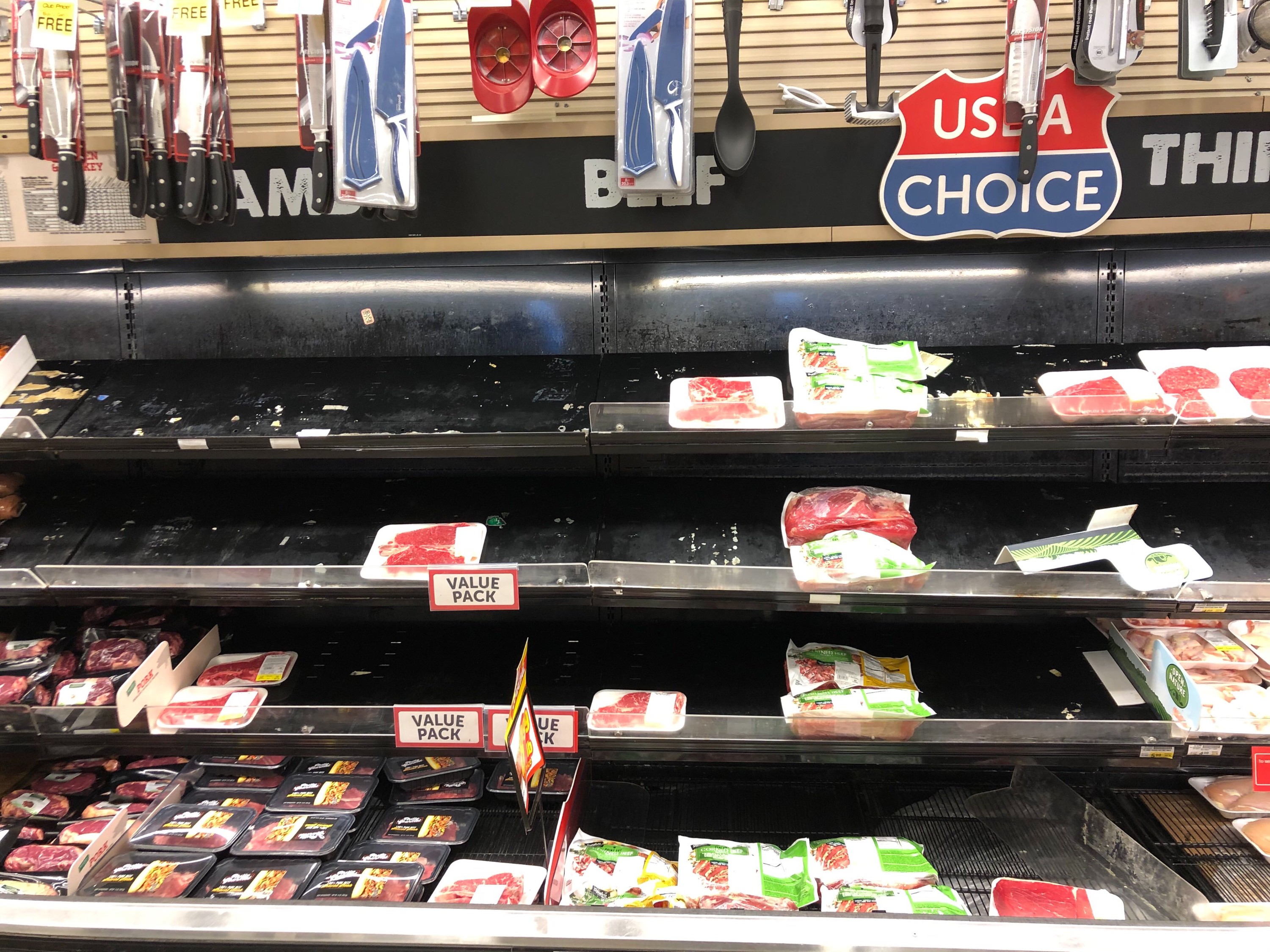 Emptying meat shelves at a Safeway in Northwest D.C.