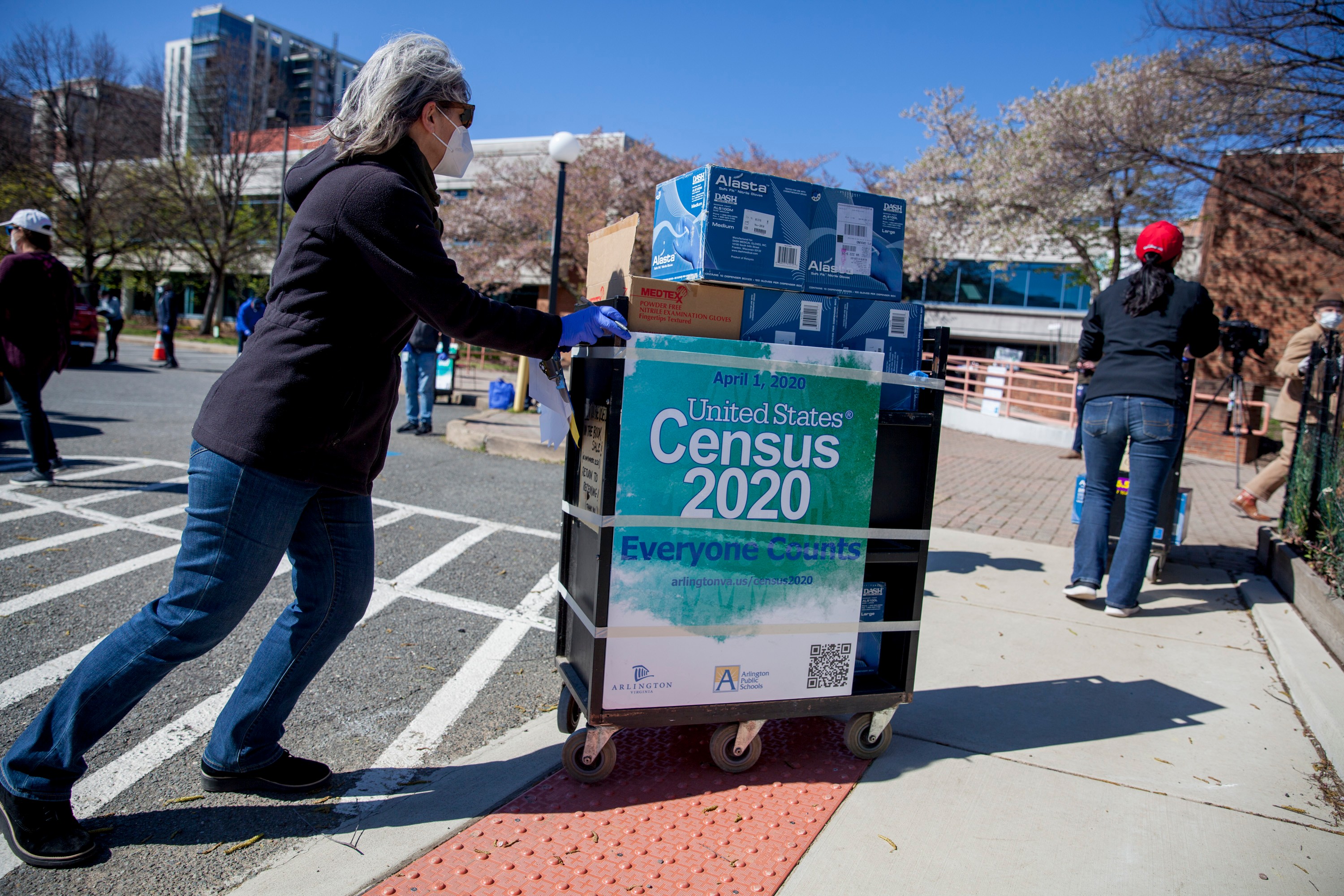 Arlington County hosted a drive-thru donation station in a library parking lot for residents to drop off supplies like personal protective equipment, canned goods, and cleaning products on Friday morning.