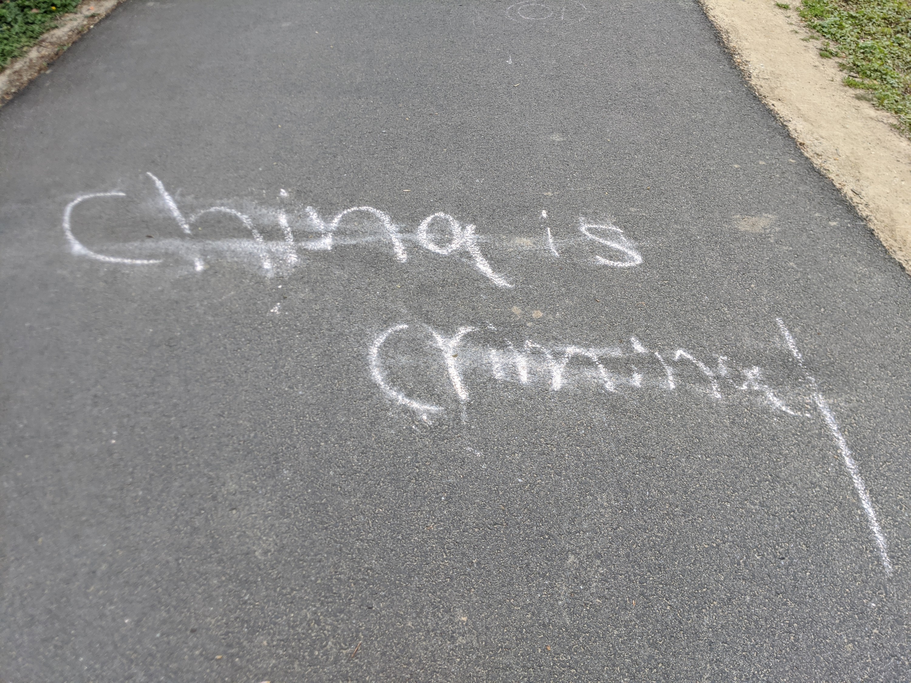 Aaron Mak, a technology writer at Slate, had read reports of growing anti-China sentiment in the wake of the coronavirus’ global spread, and had been covering the subject some himself, but he hadn’t personally witnessed anything. But on Tuesday around 5 p.m., as he was walking Rock Creek Trail, he saw a message written in what looked like white chalk on the ground near the Klingle Road overpass: “China is criminal.”