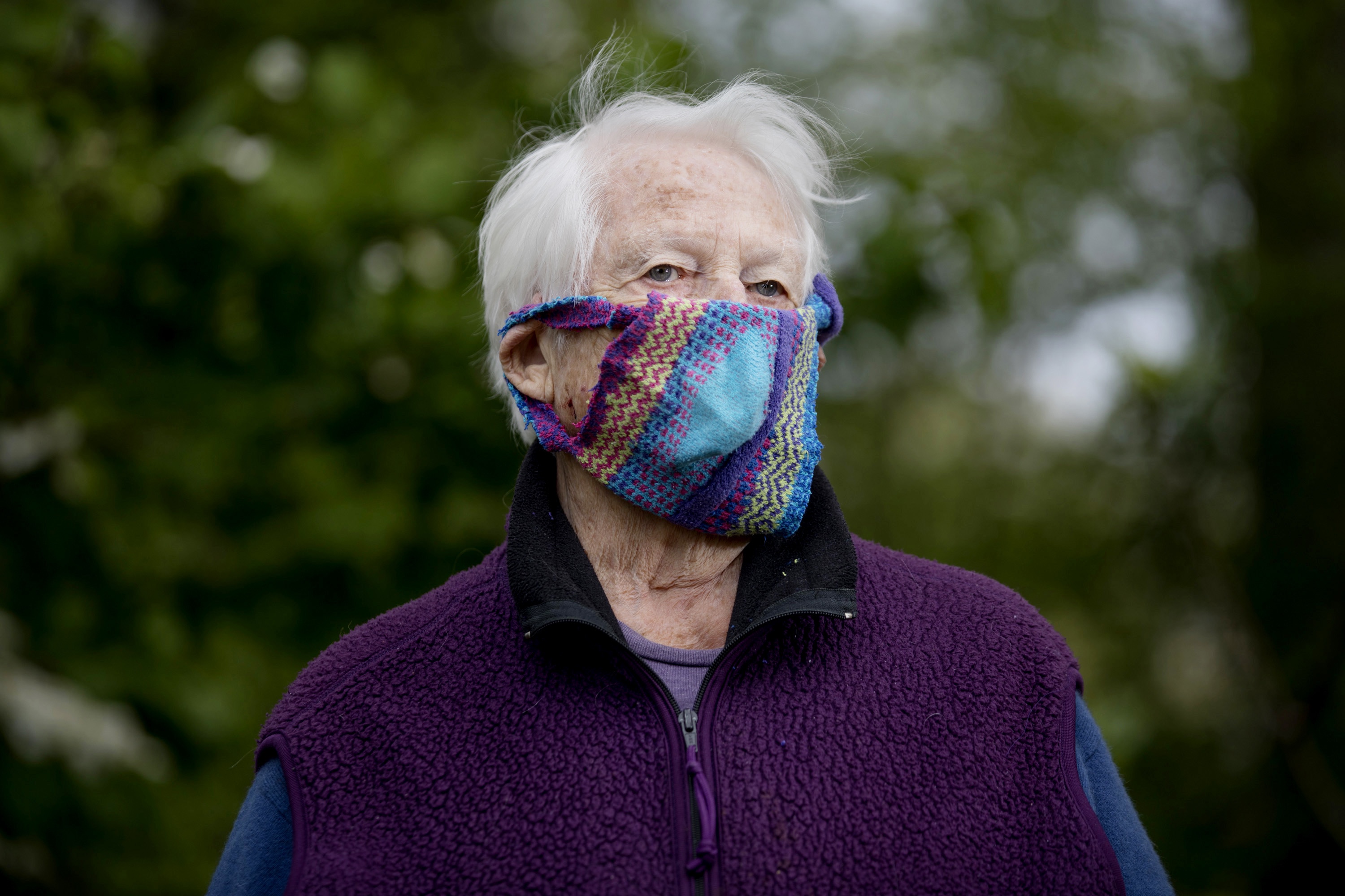 “I’ll look forward to seeing the other half of your face,” Margaret said when I introduced myself from afar. She wore a colorful purple and blue mask — her own DIY creation made out of an old sock.