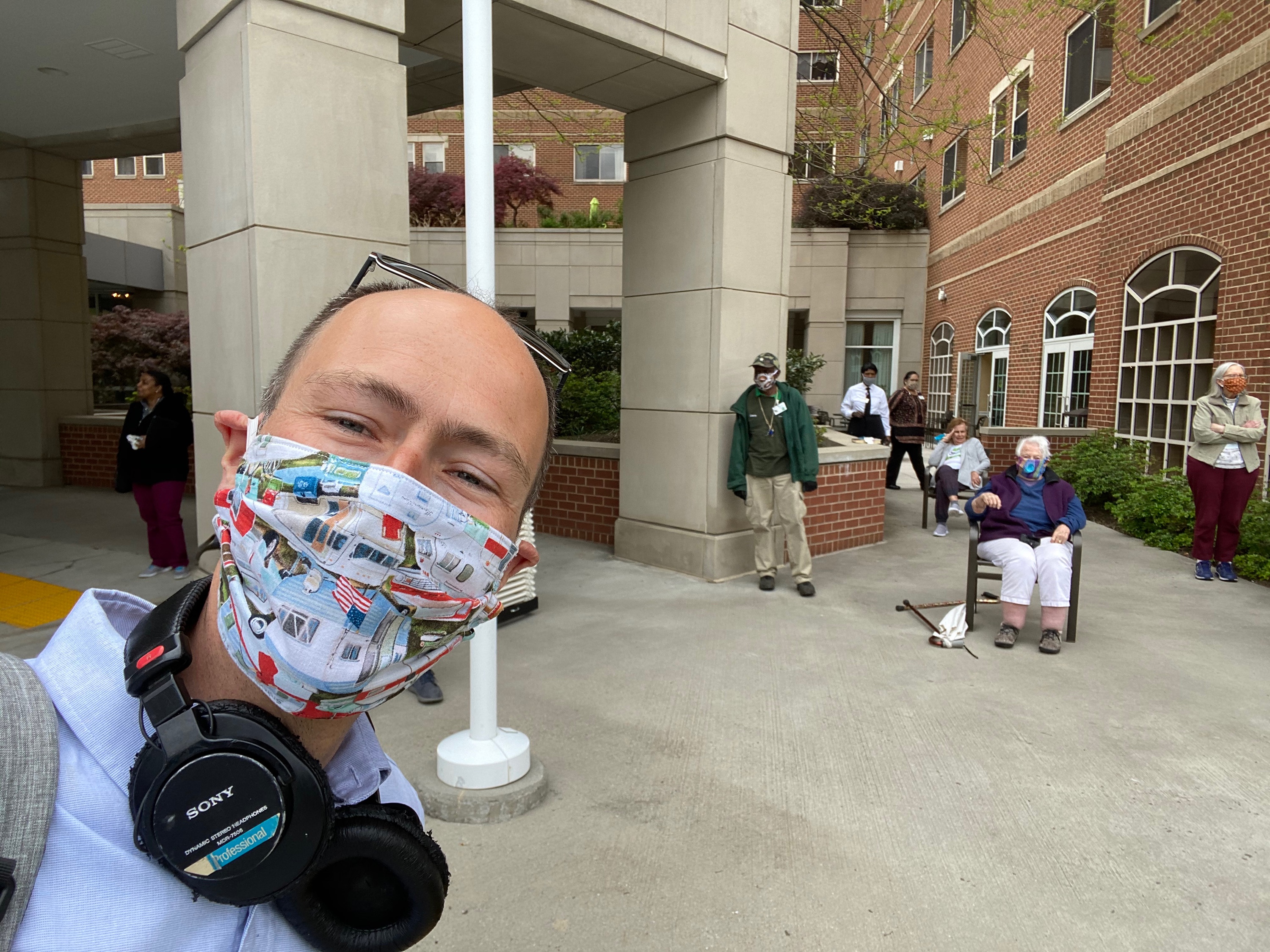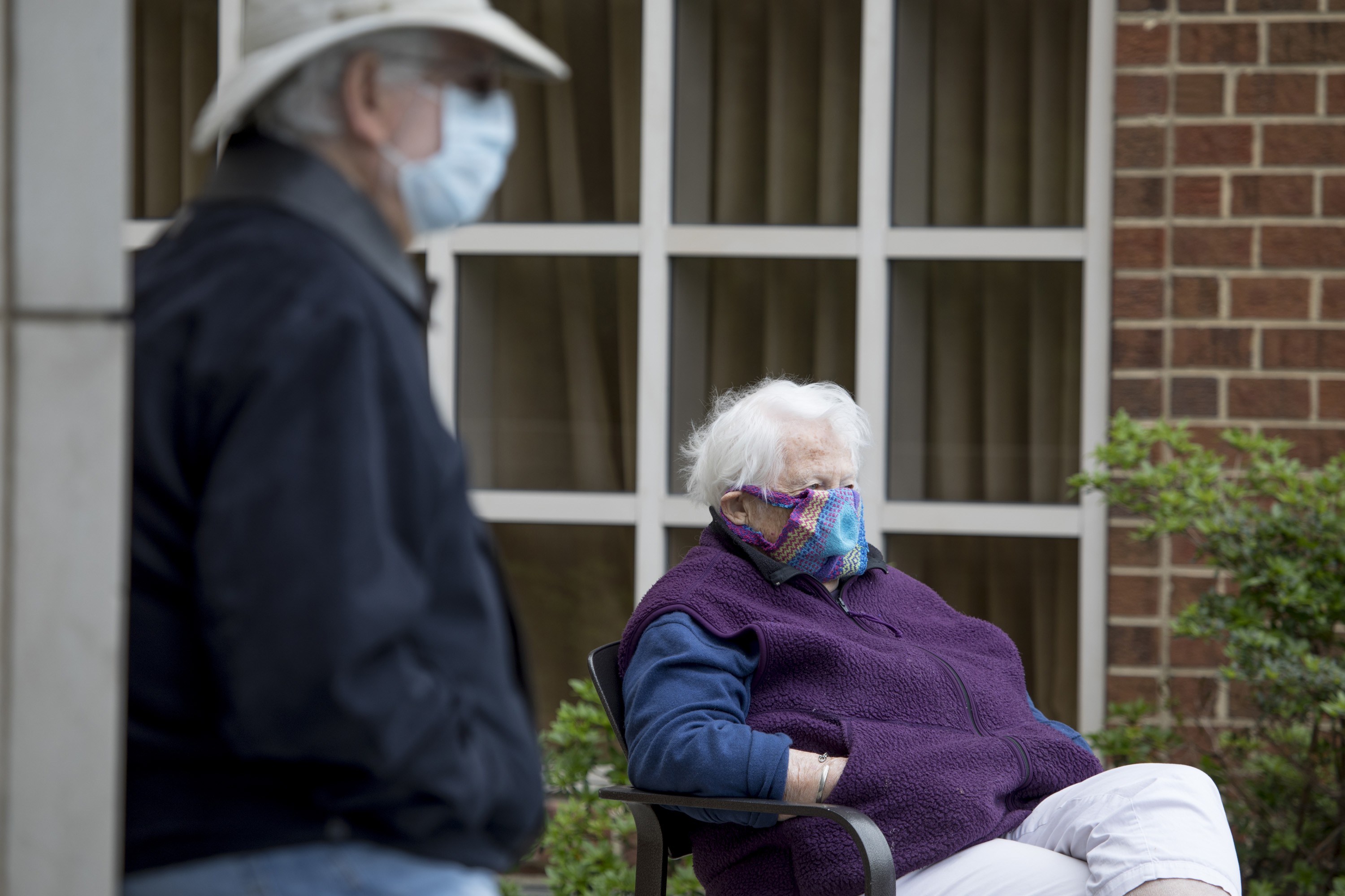I met Margaret once in person, on April 14. It was a warm spring day, and residents were outside to hear a band playing Motown music — sitting in plastic chairs spaced far apart on the lawn, or watching from their balconies.
