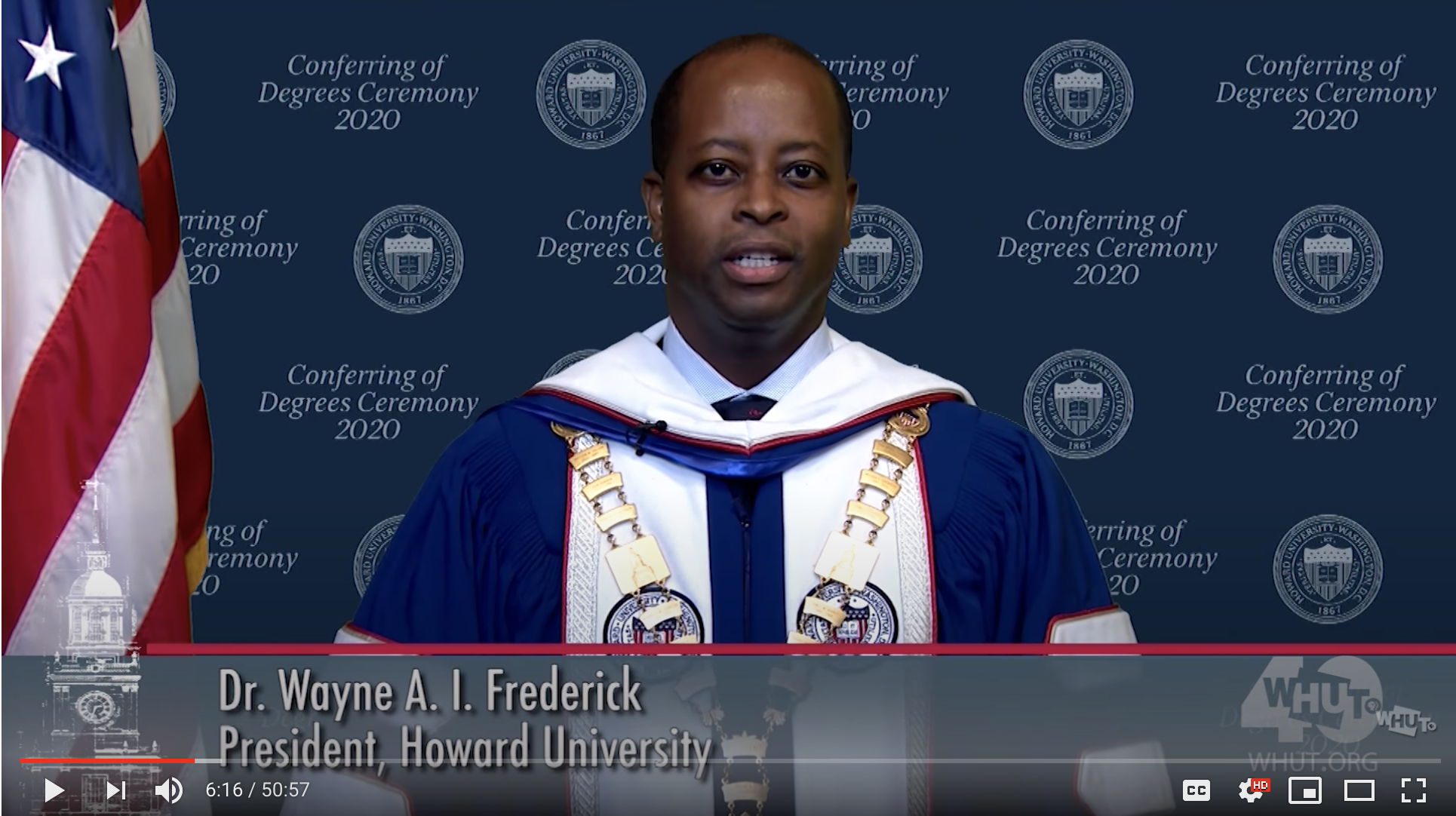 A screenshot shows part of Howard University’s digital commencement ceremony. Howard And American Universities Celebrate With Online Graduation Ceremonies