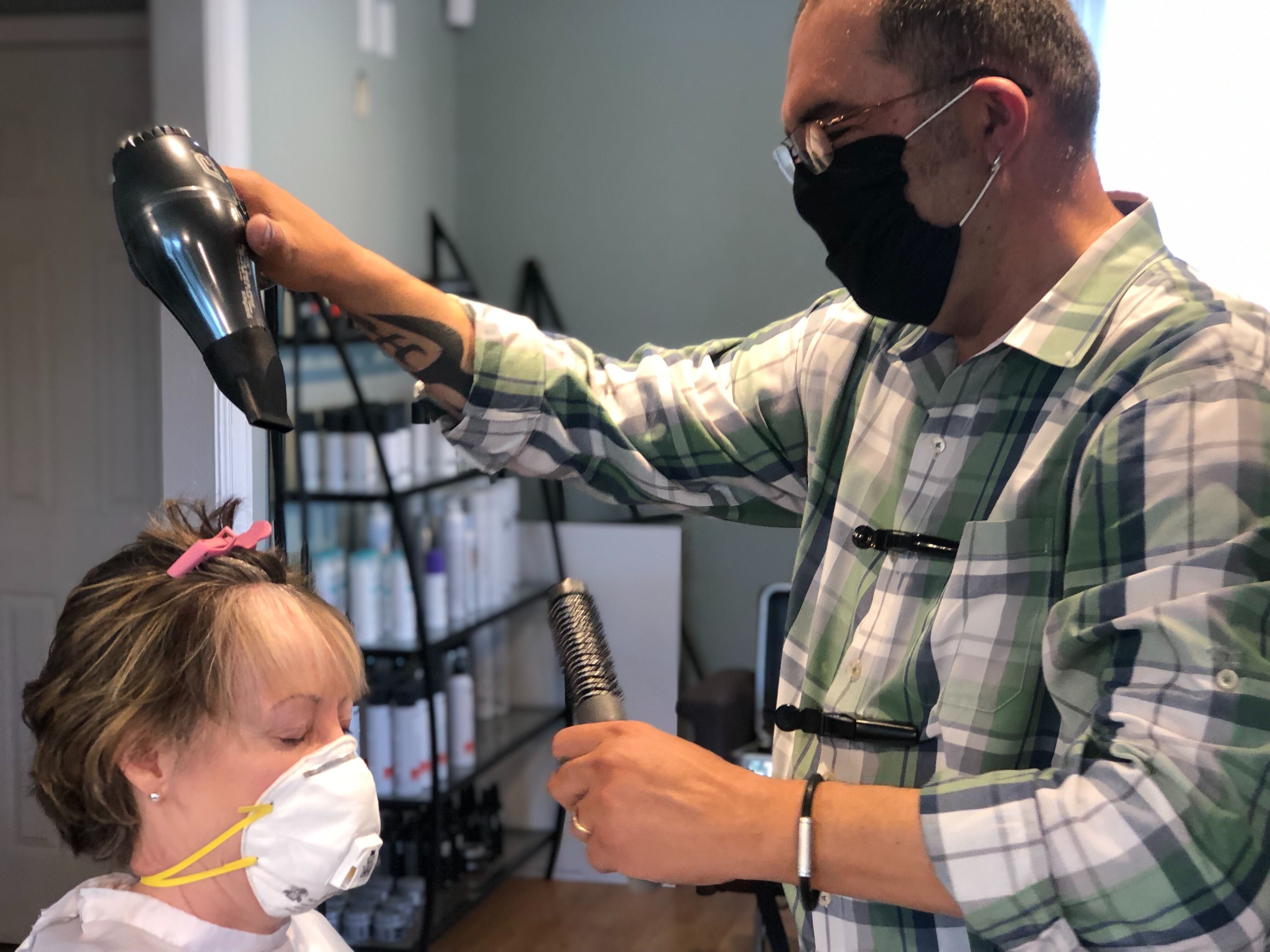 On Saturday, Carolyn Hobbs got her hair styled by Gurbuz while wearing a face mask and gloves. It was her first haircut since the end of February.