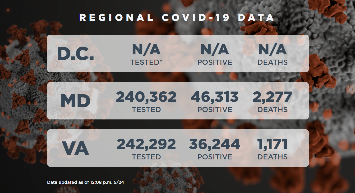 For more on how coronavirus has impacted the D.C. region, see these updates from the week of May 11-May 17.