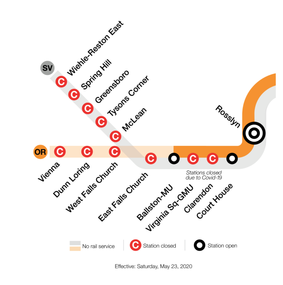 Three of the stations (East Falls Church, MacLean, and Greensboro) have already been closed due to low ridership during the pandemic.
