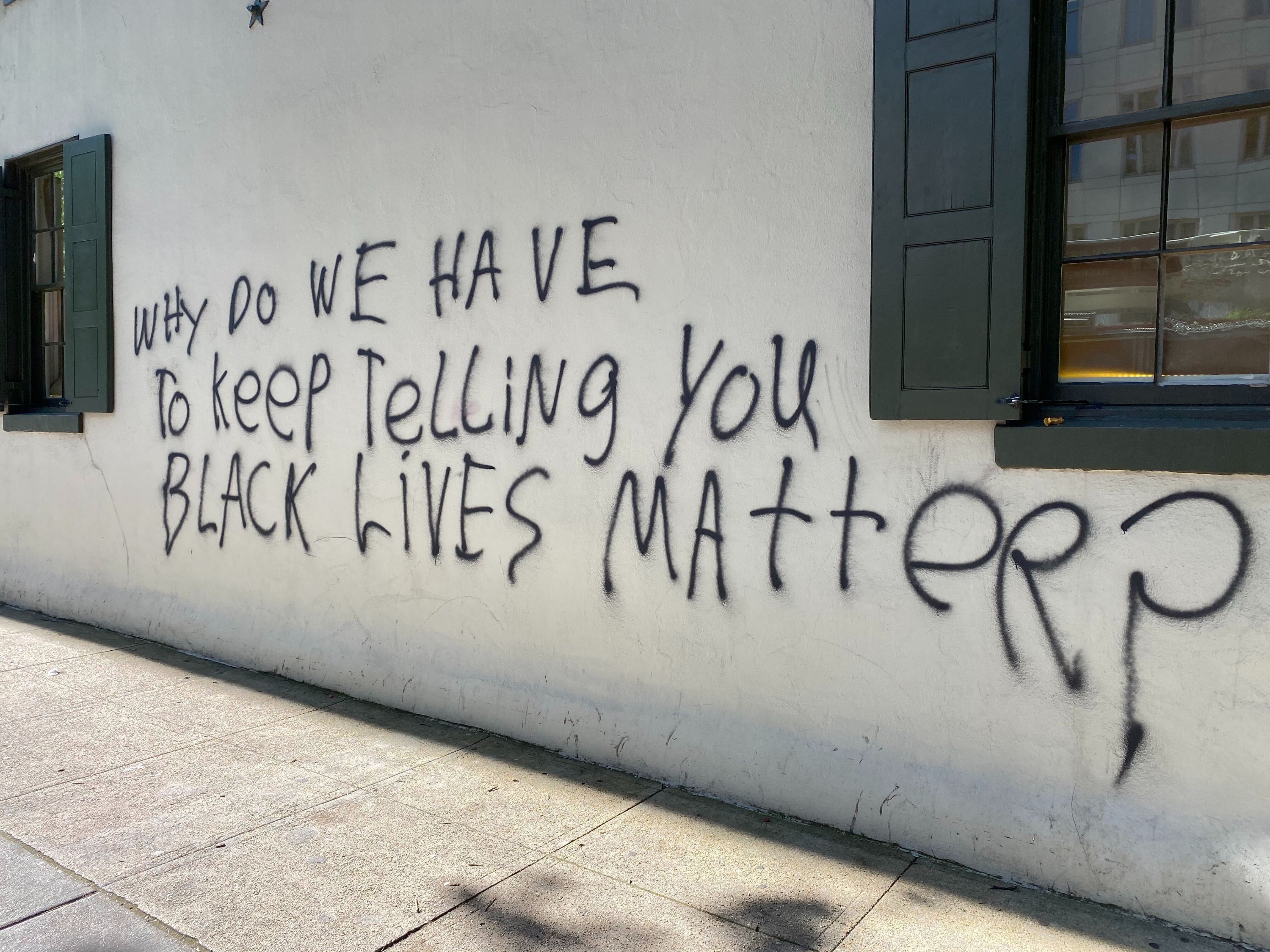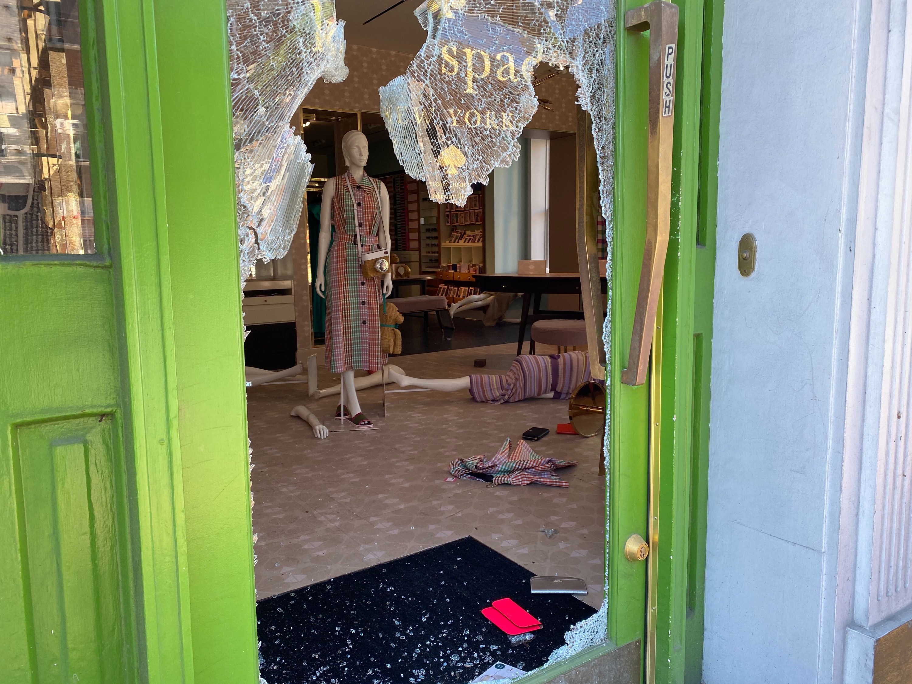 As Washington woke up on Sunday morning, the alarm was still going off at a Michael Kors store in Georgetown. Mannequins lay scattered on the floor of a looted Kate Spade store. Discarded water bottles and glass shards littered the city’s streets. One didn’t have to look far in downtown D.C. to see fresh graffiti. One message on a building in Lafayette Park asked: “Why do we have to keep telling you black lives matter?”