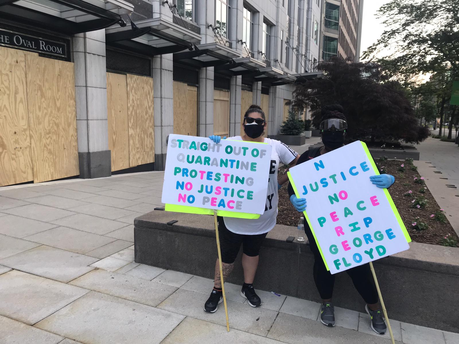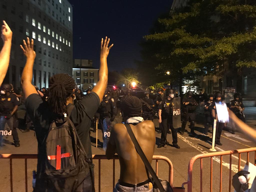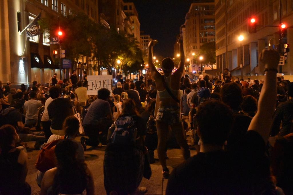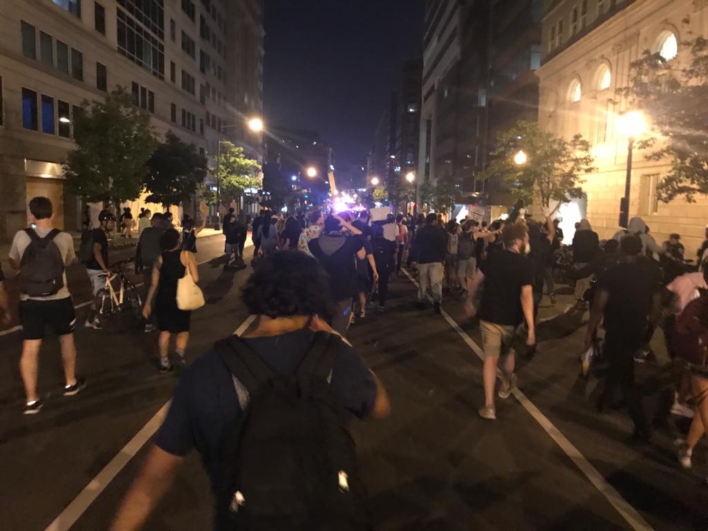 “Last night was incredibly calm,” says Jonathan Blackmon, a protestor and D.C. resident who had come out to the demonstrations for the last four days. “Don’t get me wrong, there were agitators who wanted to get rowdy, but the crowd wouldn’t let them. So every time somebody started to throw things, ‘peaceful protests’ was the chant that was going around the crowd.”